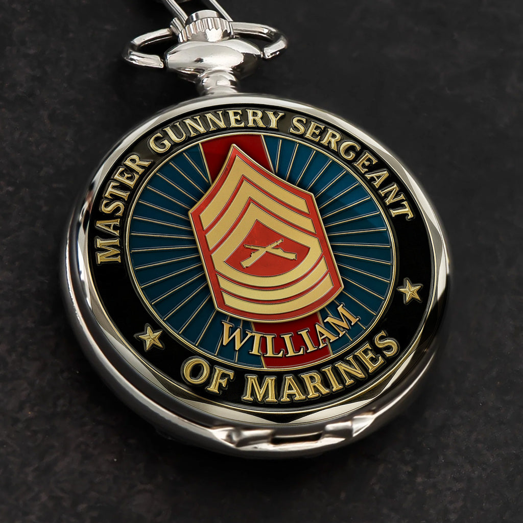 Custom Rank USMC Pocket Watch – Personalized Marine Corps Veteran Gift