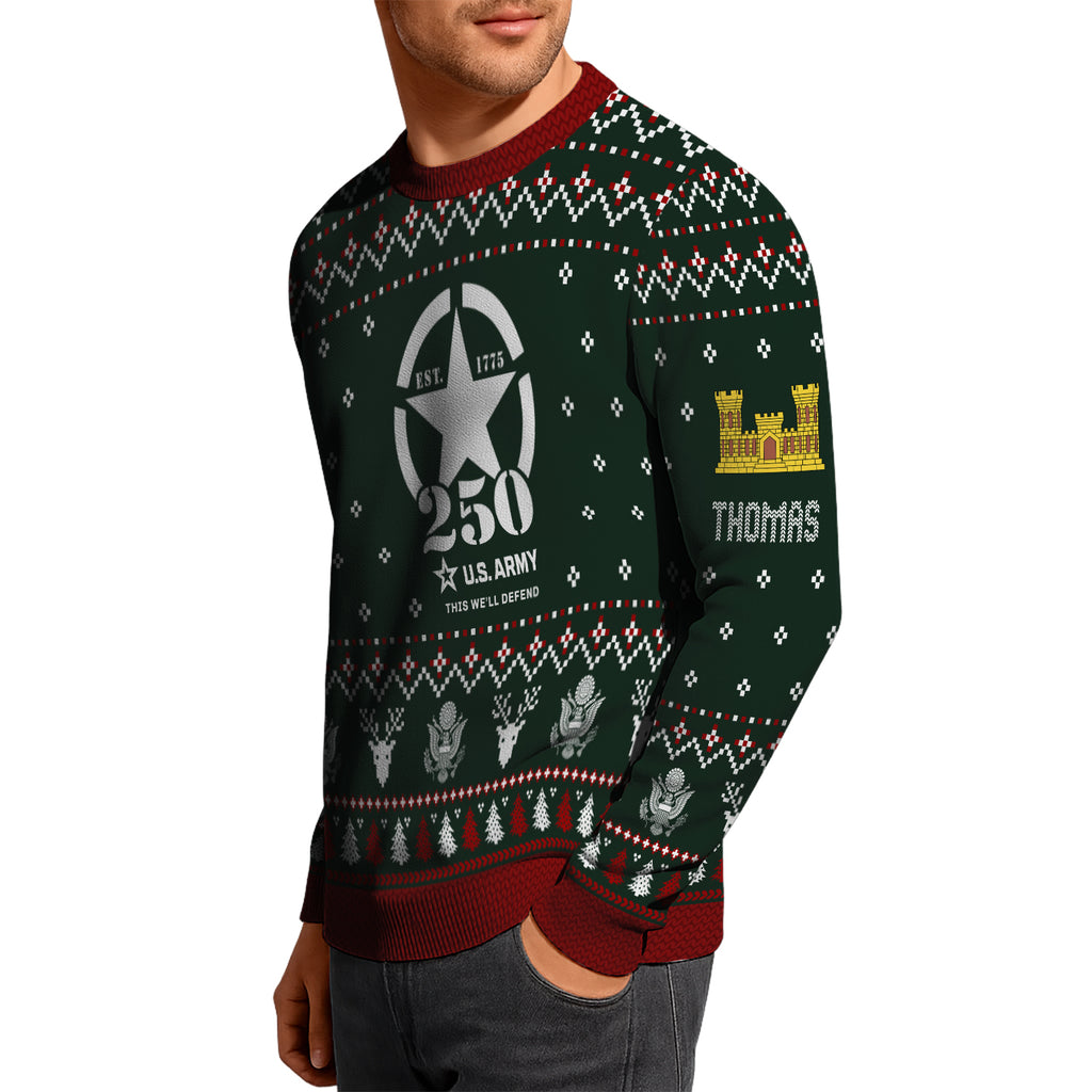 Custom Ranks And Text US Army Ugly Christmas Sweater for Women Men JUST01