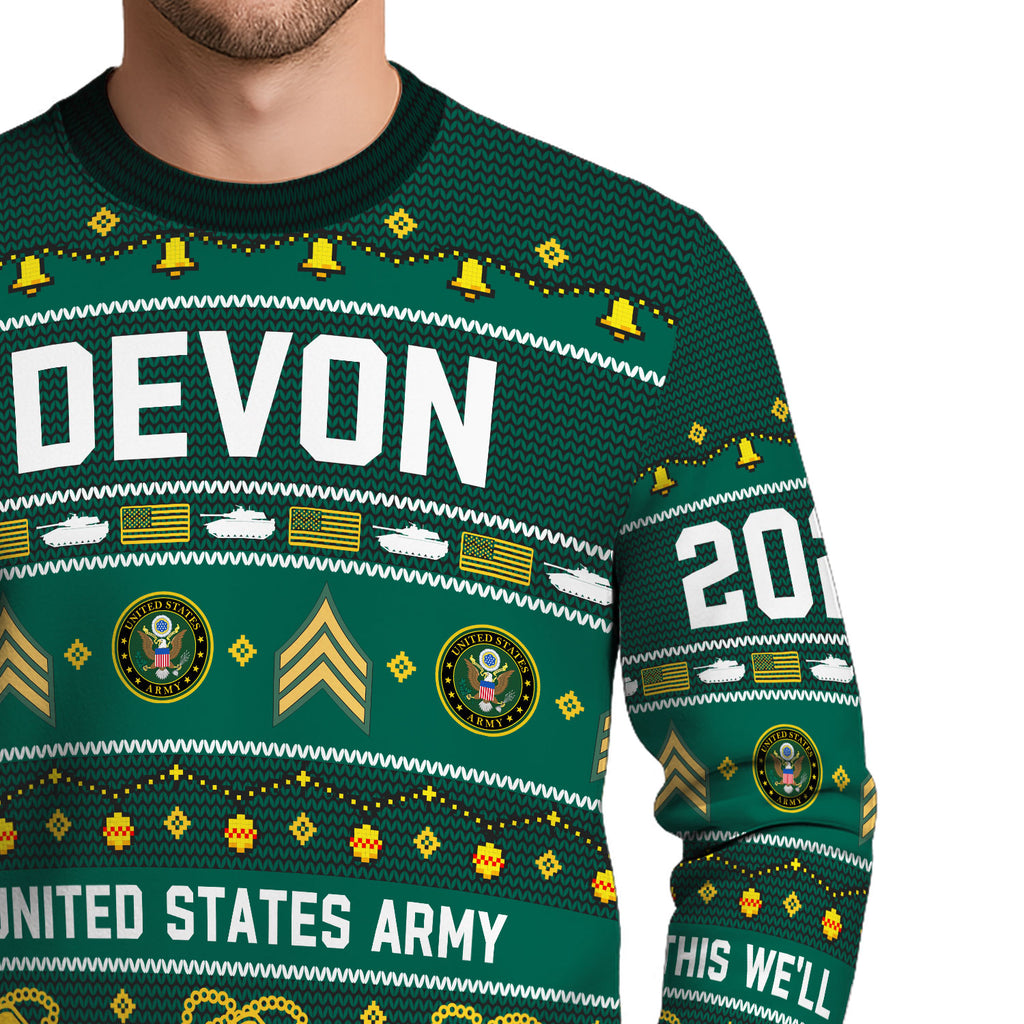 Custom Ranks And Text US Army Ugly Christmas Sweater for Women Men KAUST03