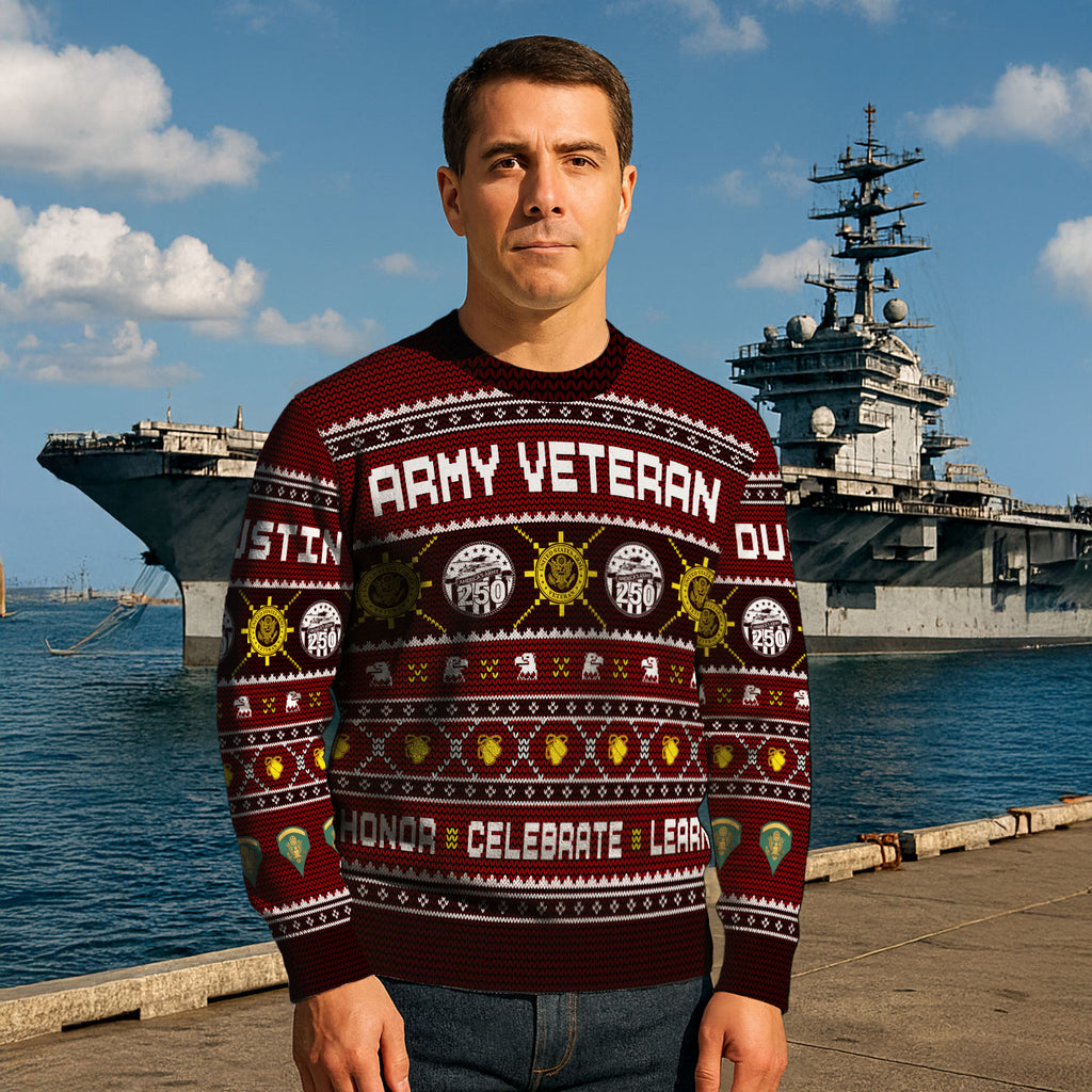 Custom Ranks And Text US Army Ugly Christmas Sweater for Women Men KAUST06