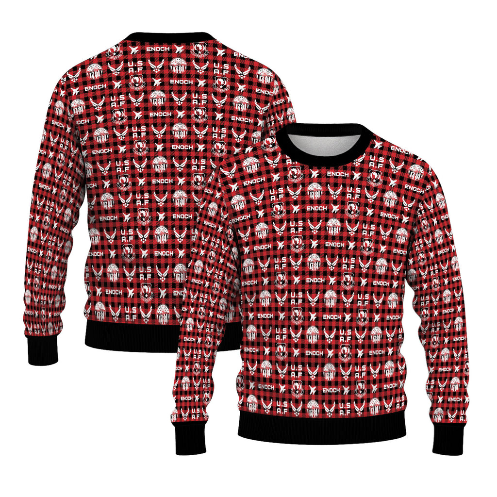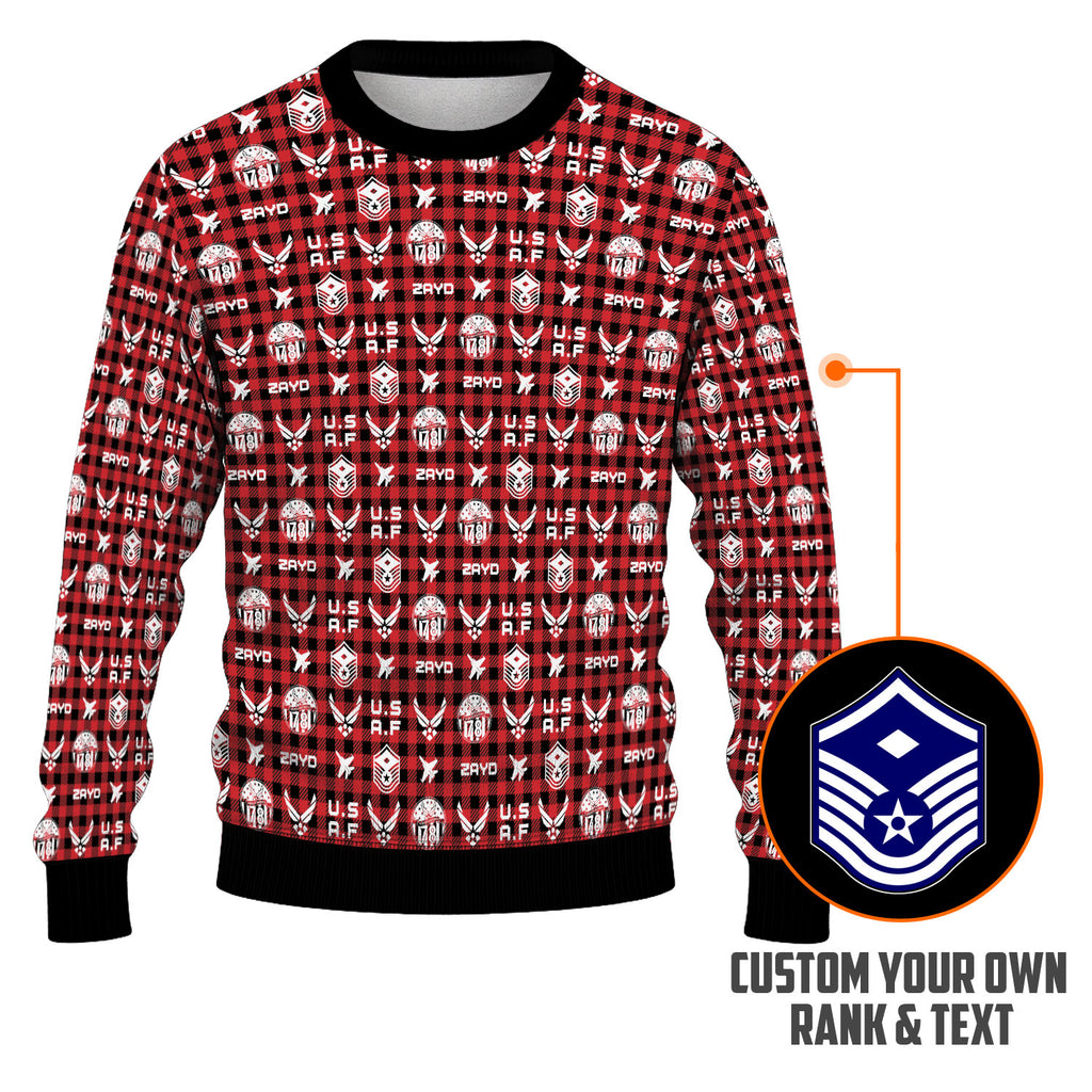 Custom Ranks And Text US Air Force Ugly Christmas Sweater for Women Men KAUST04
