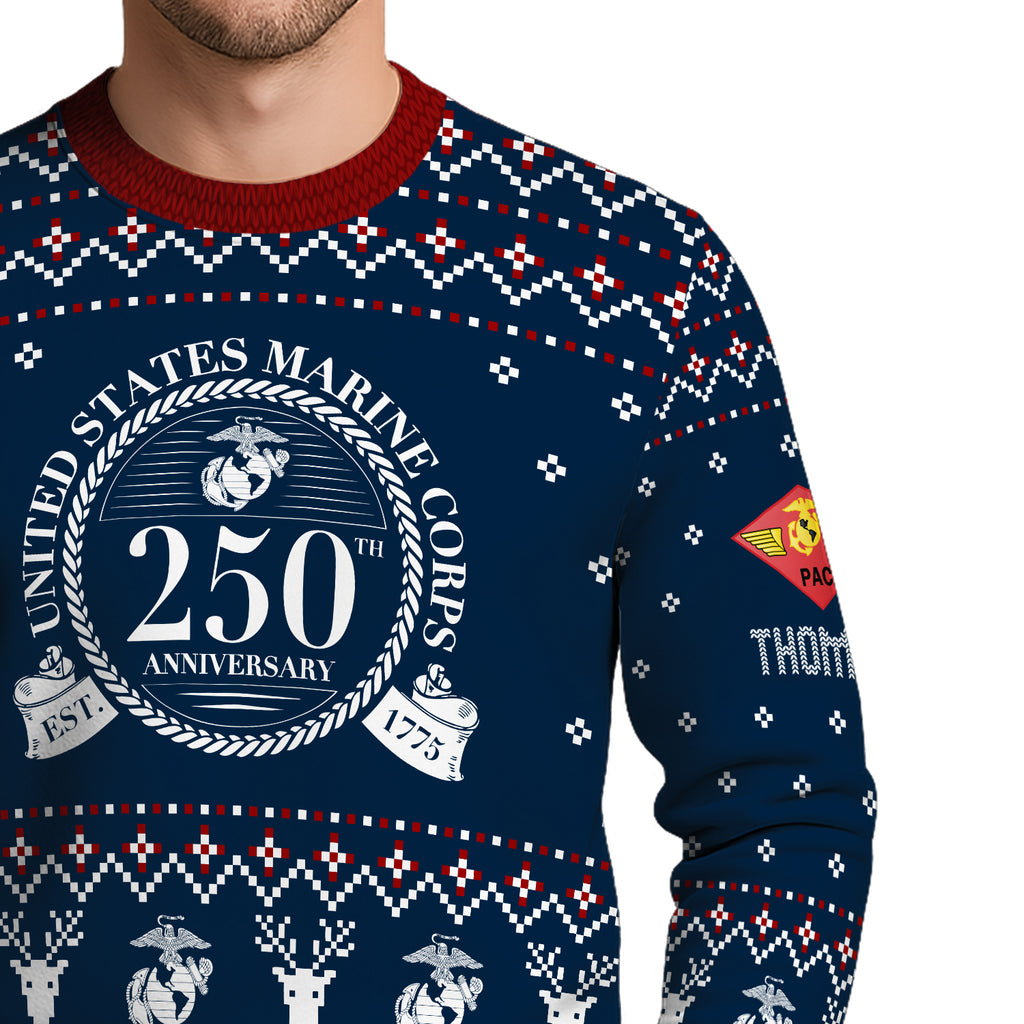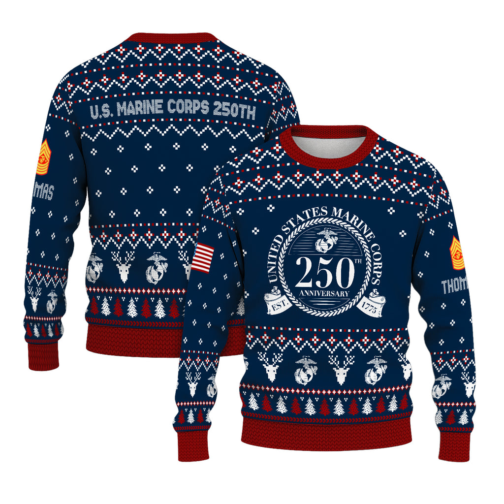 Custom Ranks And Text USMC Ugly Christmas Sweater for Women Men JUST01