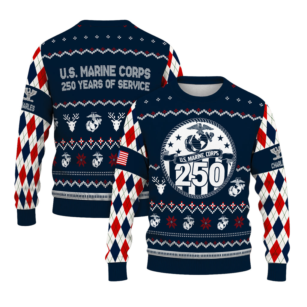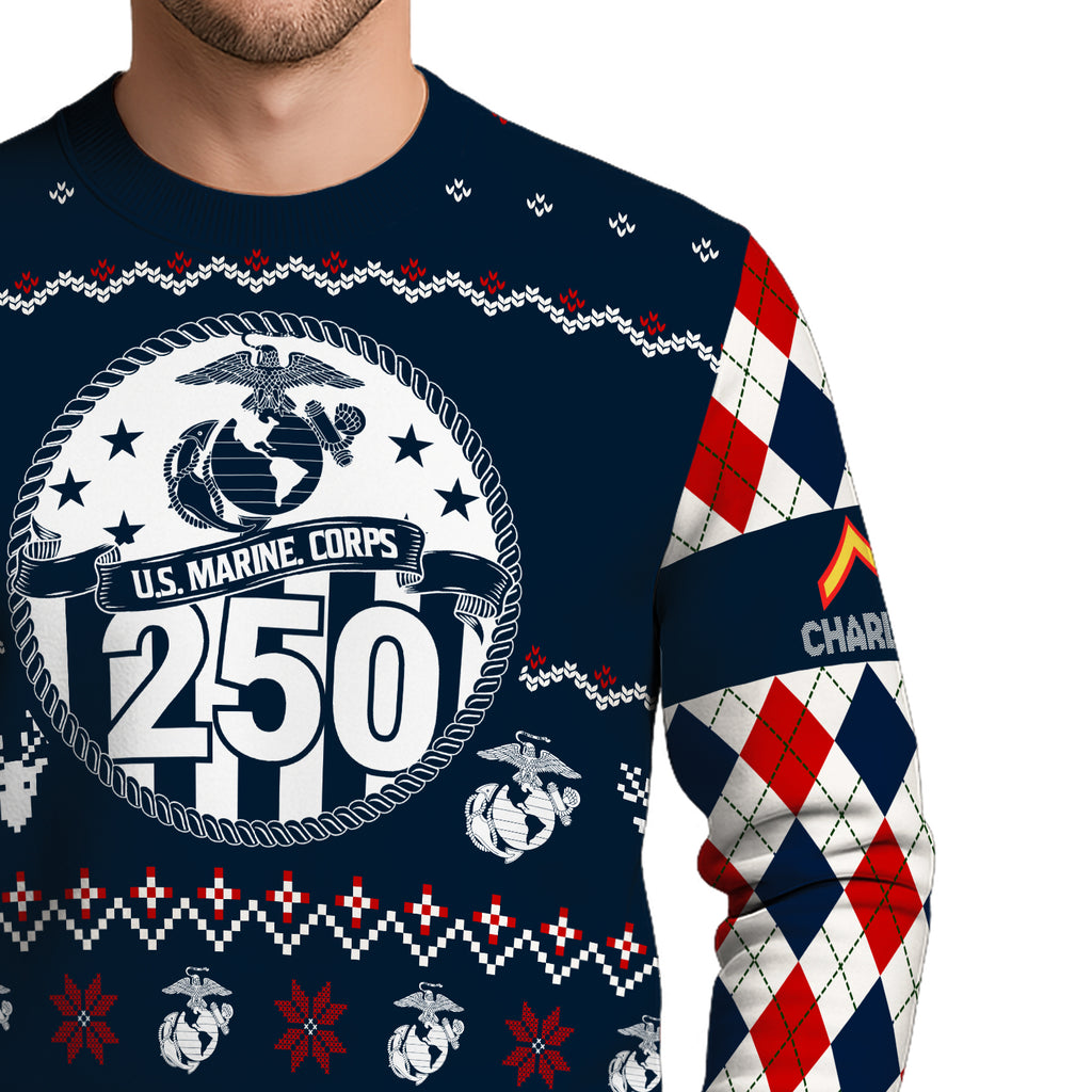 Custom Ranks And Text USMC Ugly Christmas Sweater for Women Men JUST05