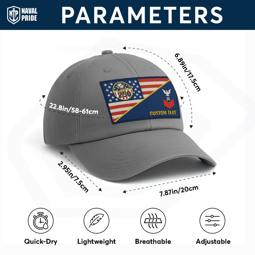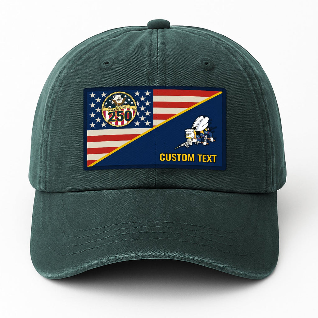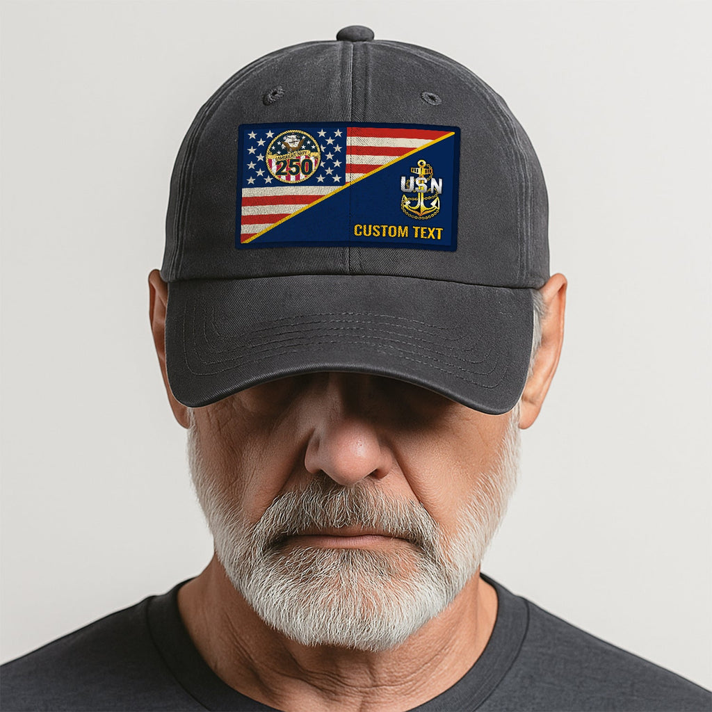 Custom Ranks & Text US Navy Premium Washed Denim Cap DC017