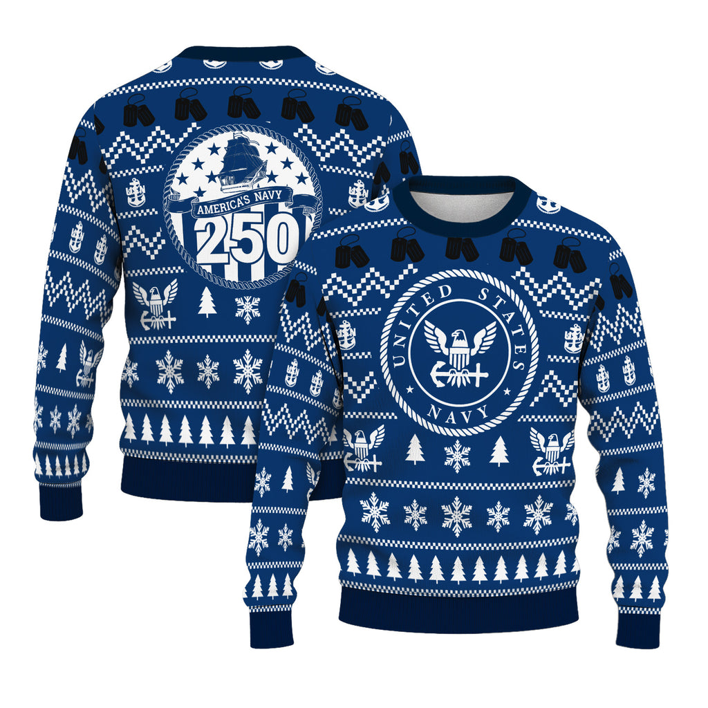 Custom Ranks US Navy Ugly Christmas Sweater for Women Men TUST01