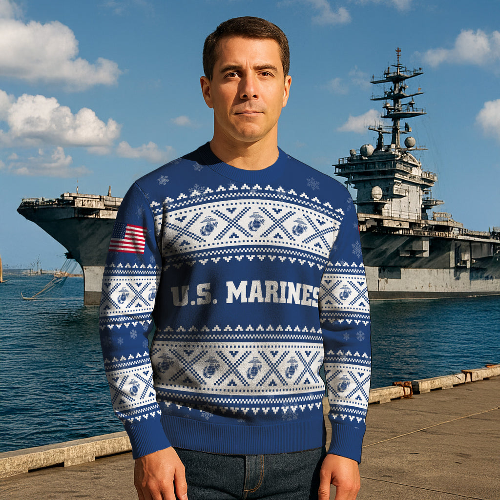 Custom Ranks USMC Ugly Christmas Sweater for Women Men KRUST05