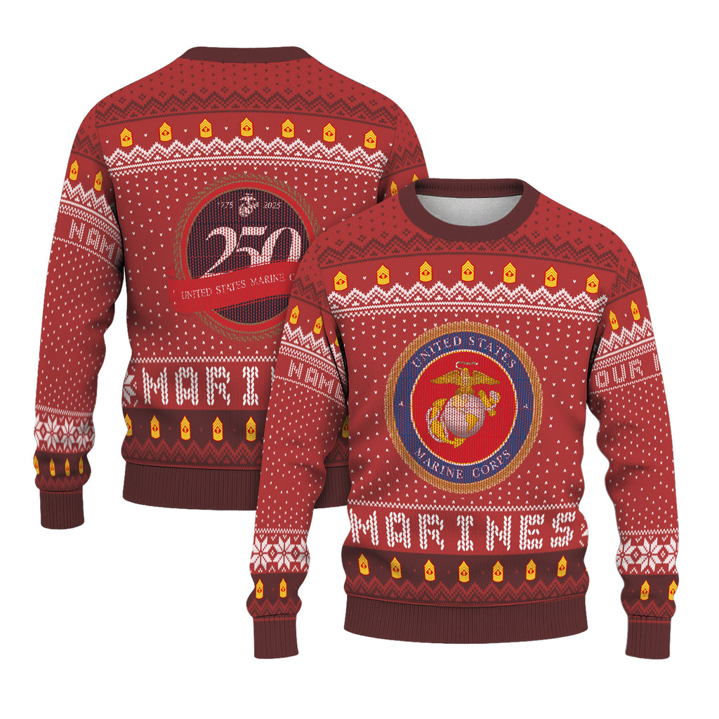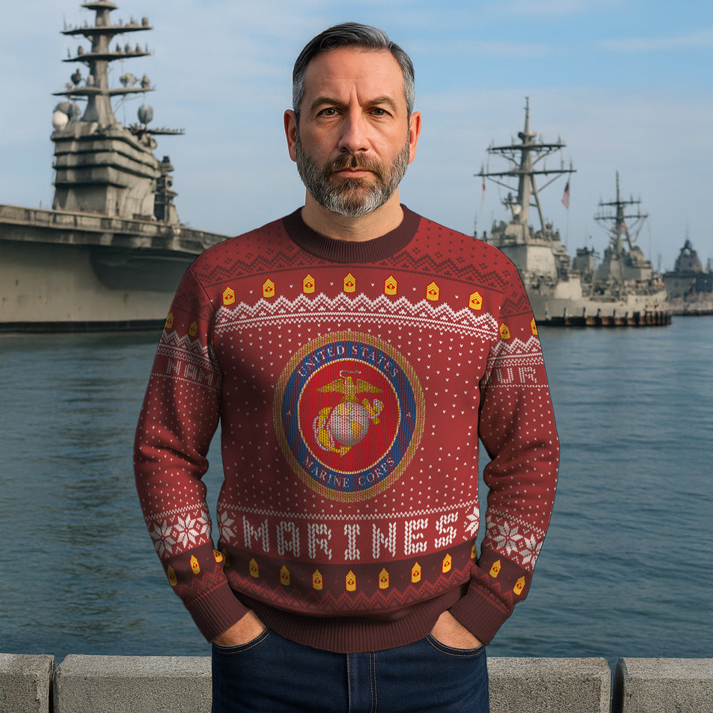 Custom Ranks And Text USMC Ugly Christmas Sweater for Women Men TUST04