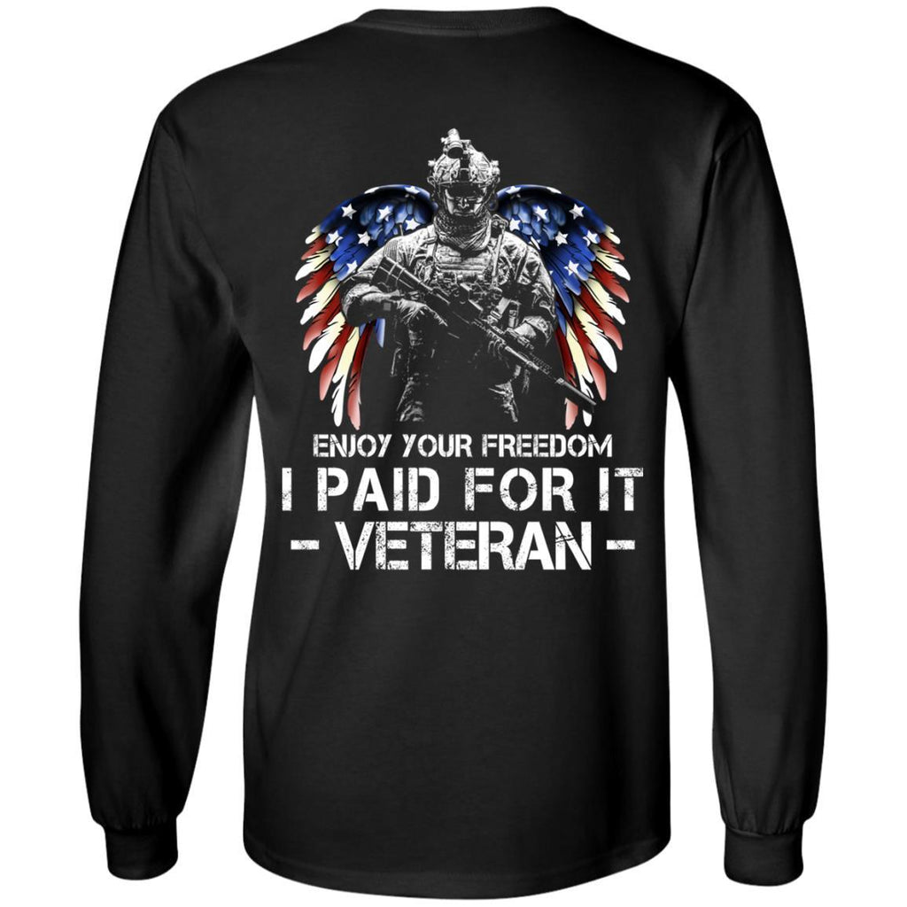 Military T-Shirt "Enjoy Your Freedom - I Paid For It Veteran Men" On Back