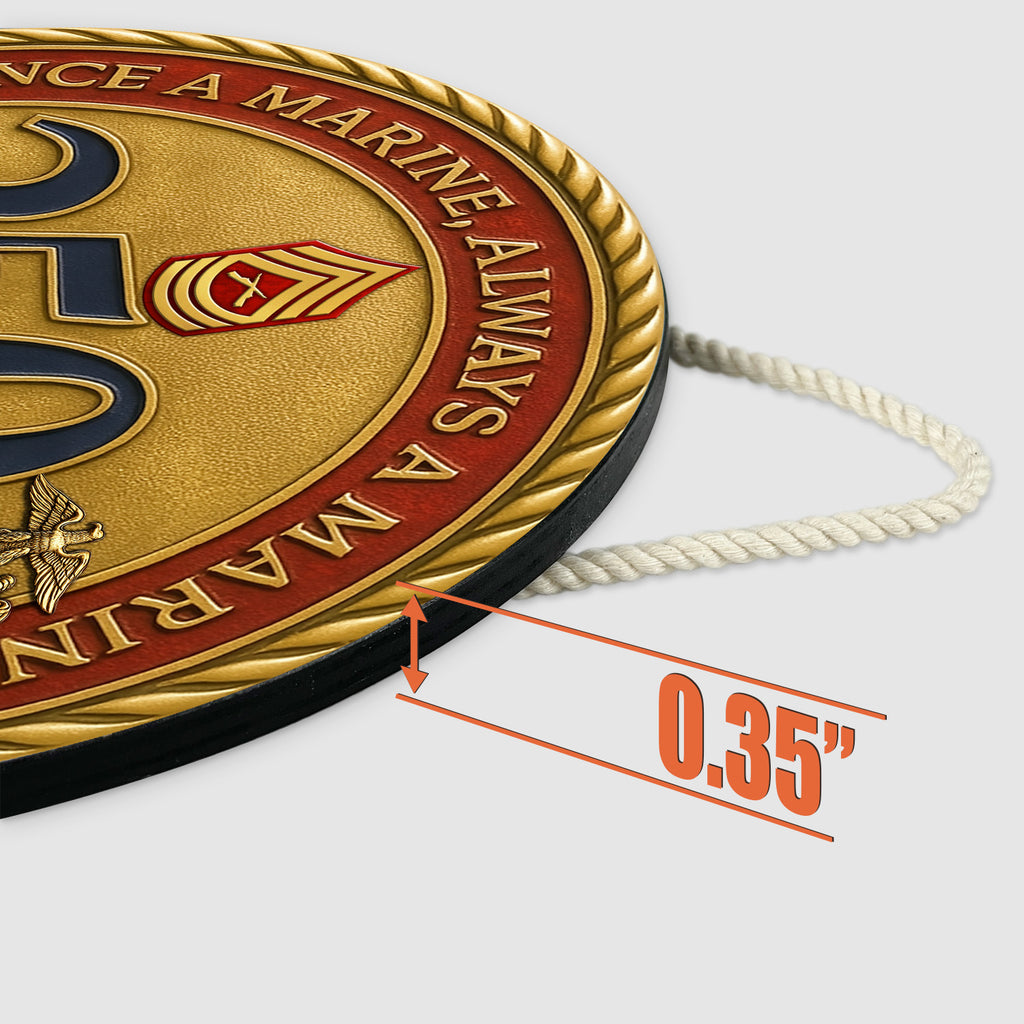Printed on high-quality round wood, this patriotic sign is built to last and perfect for displaying in a home, office, or military memory wall. Ideal for the 250th MARlNE Corps Birthday, Veterans Day, retirement ceremonies, or simply honoring your MARlNE’s proud journey.
