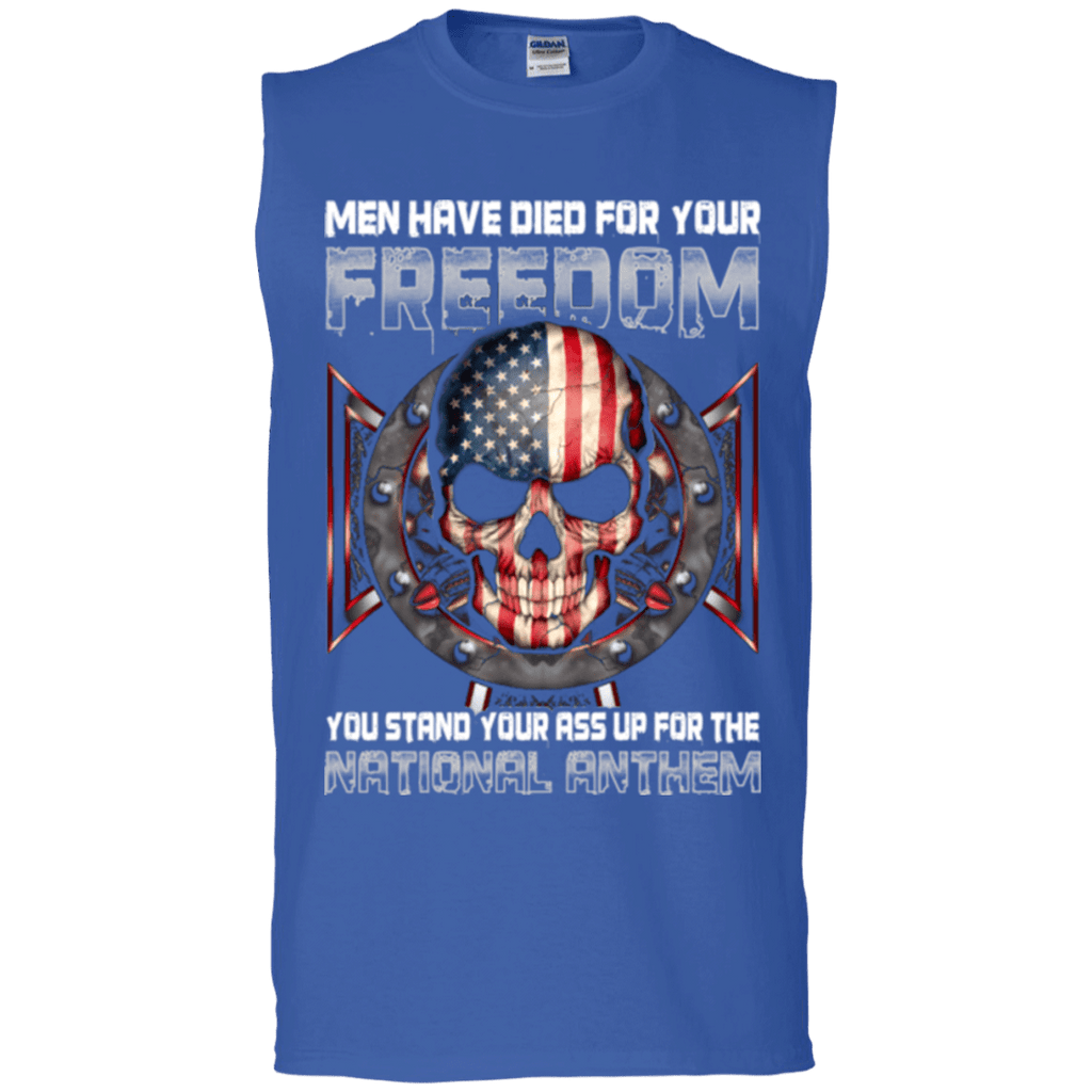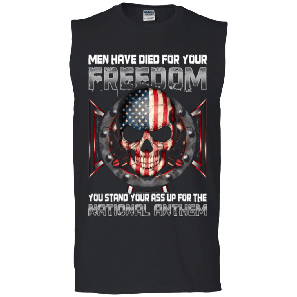 Military T-Shirt "MEN HAVE DIED FOR YOUR FREEDOM STAND UP FOR THE NATIONAL ANTHEM"
