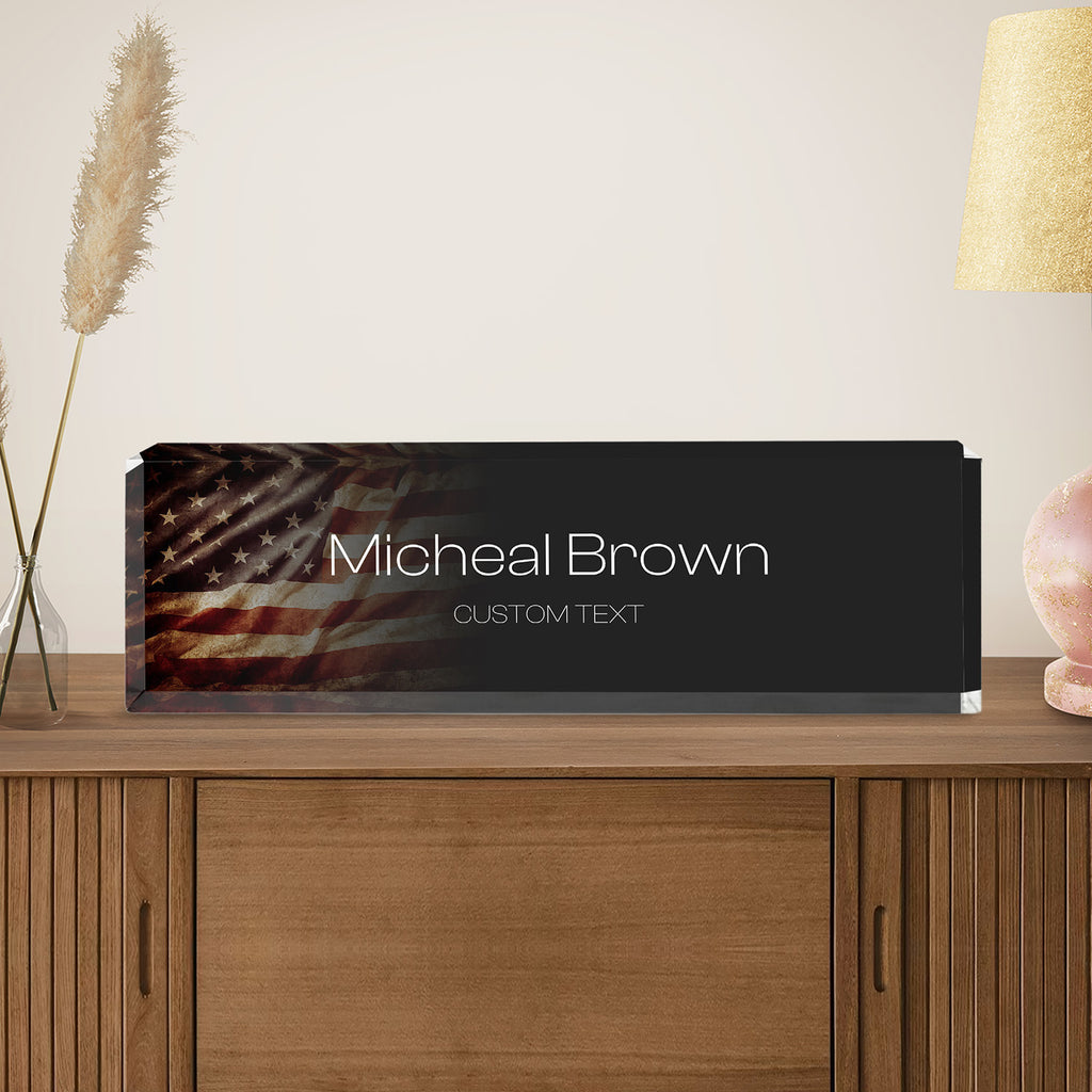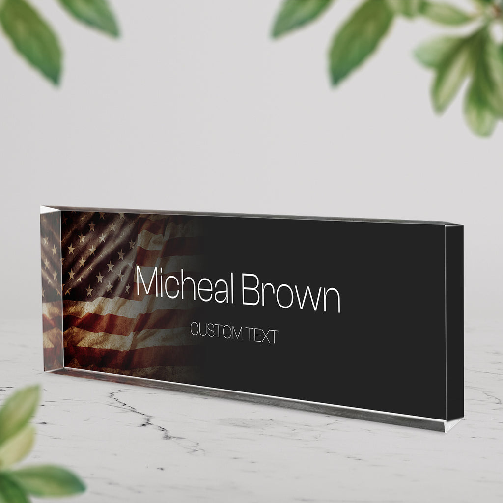 Celebrate honor, service, and patriotism with this personalized acrylic plaque, suitable for any U.S. military branch including the Navy, Marines, Army, or Air Force. Customize it with name, rank, and service year to create a unique tribute for promotions, retirements, or milestone events like the 250th Anniversary of your branch. Printed on durable, crystal-clear acrylic with a bold American flag backdrop, it’s a meaningful keepsake for display at home, in the office, or during special recognition ceremonies.