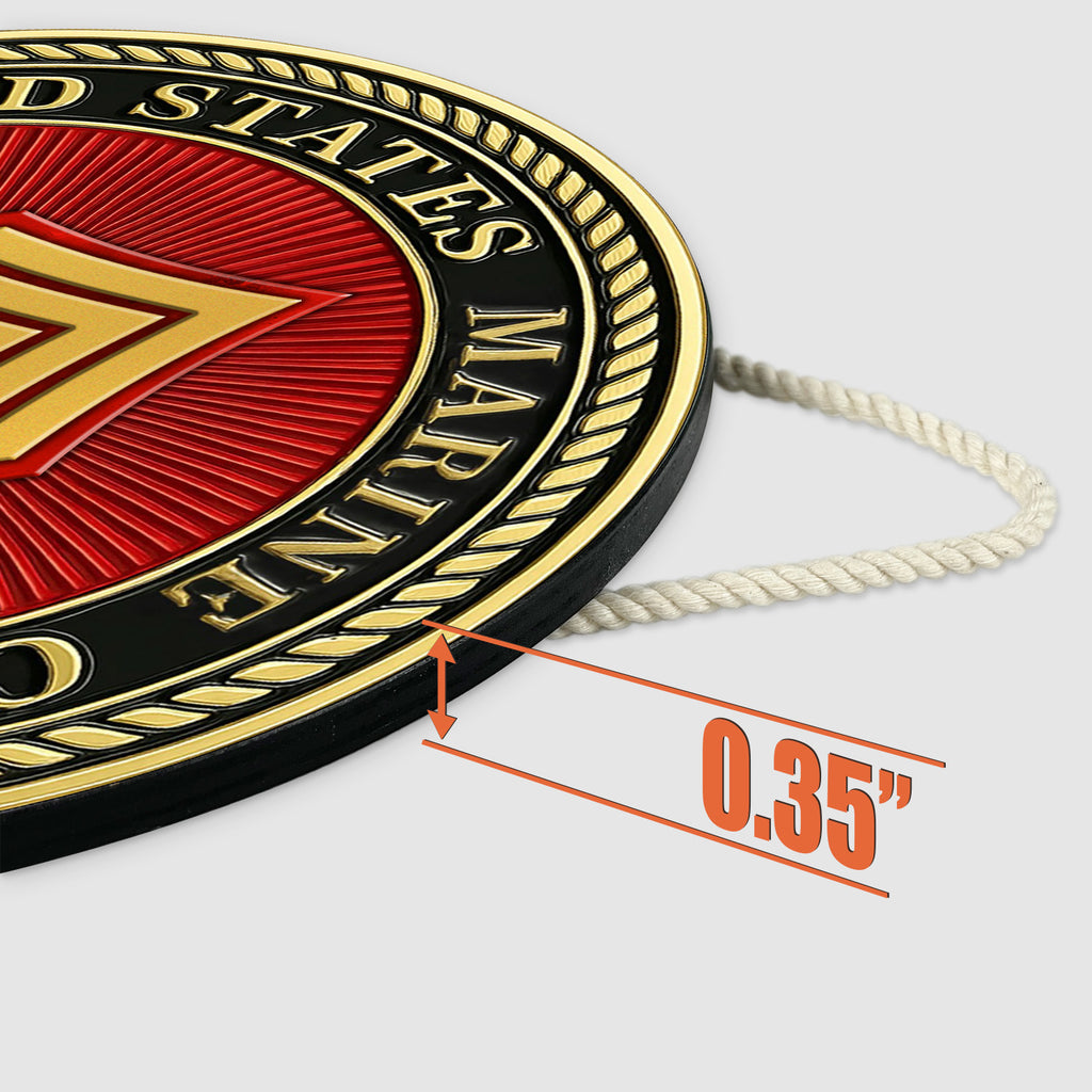Celebrate the strength, discipline, and honor of the MARlNE Corps with this bold and personalized round wooden sign. Featuring the striking gold MARlNE chevron insignia set against a radiant red sunburst background, this piece commands attention and pride.