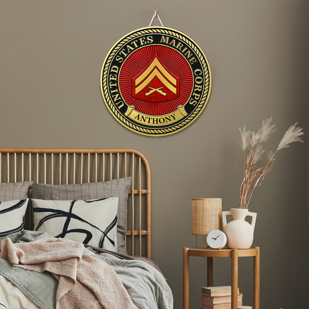 Personalized MARlNE Corps Wooden Sign – Custom Rank & Name Military Wall Art
