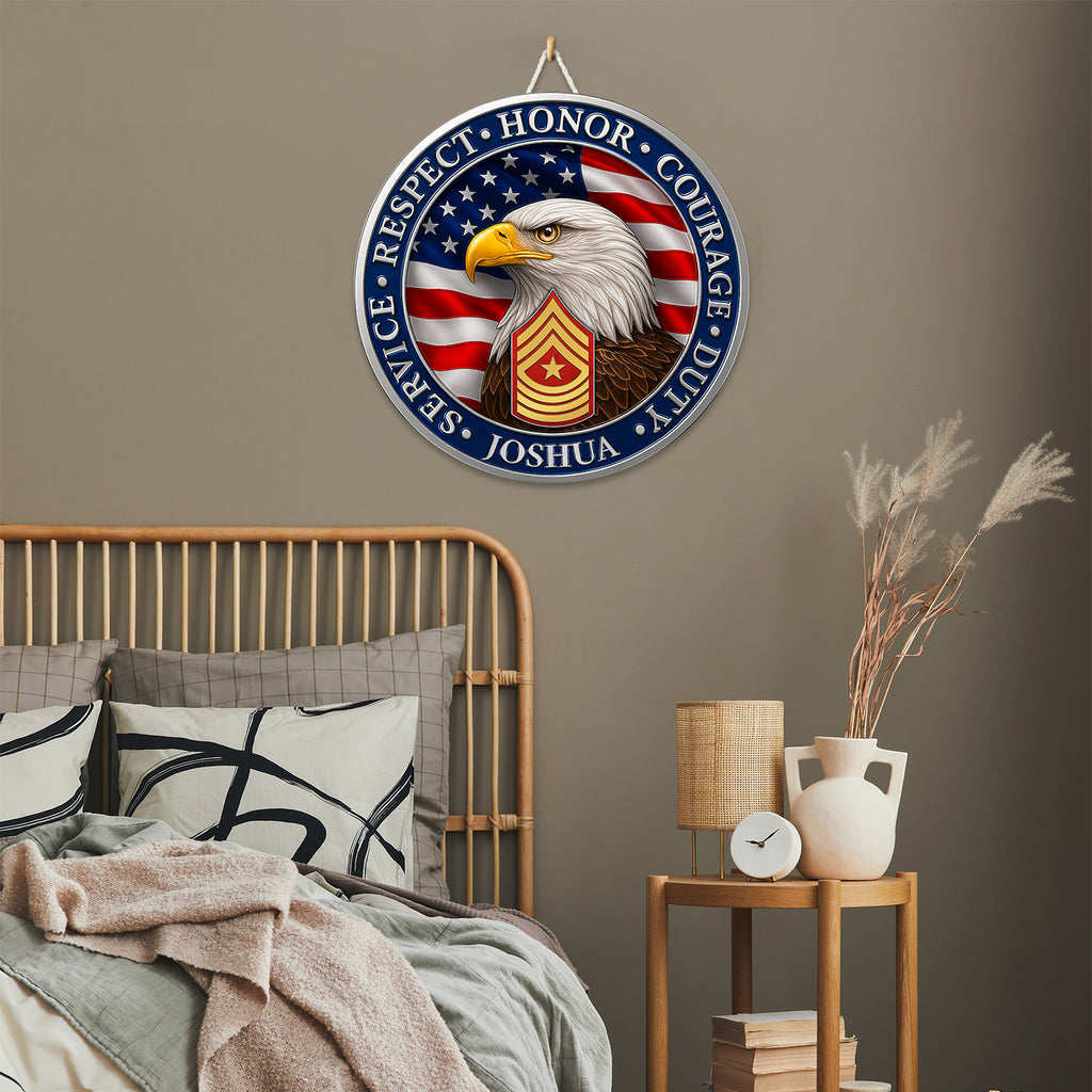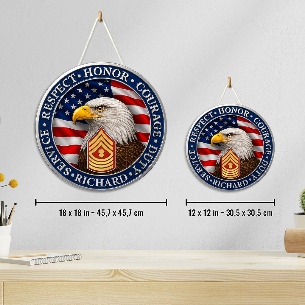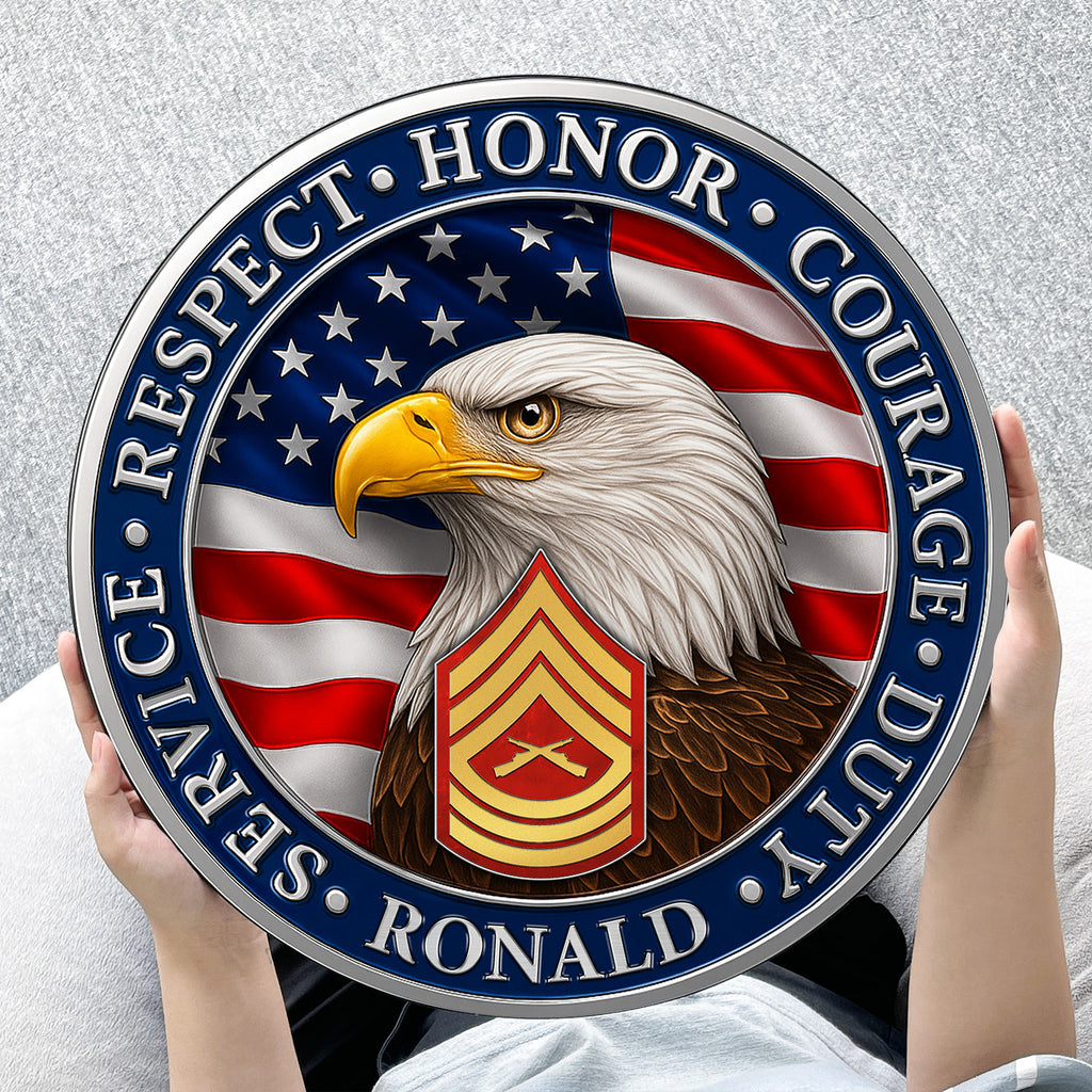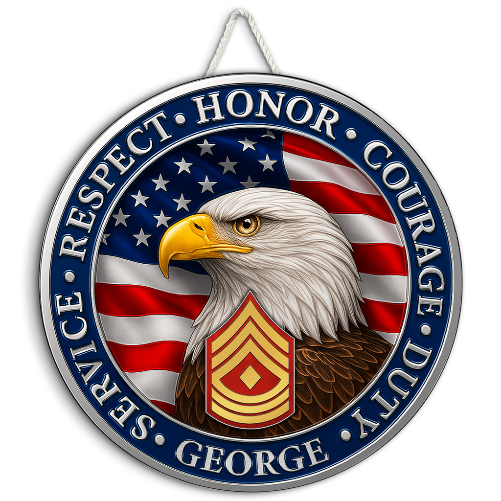 Personalized with your hero’s name, this round wooden sign is a heartfelt tribute for Veterans, Retired MARlNEs, or Active-Duty service members. It makes a meaningful gift for occasions like Veterans Day, Marine Corps Birthday (Nov 10), or a proud homecoming surprise.