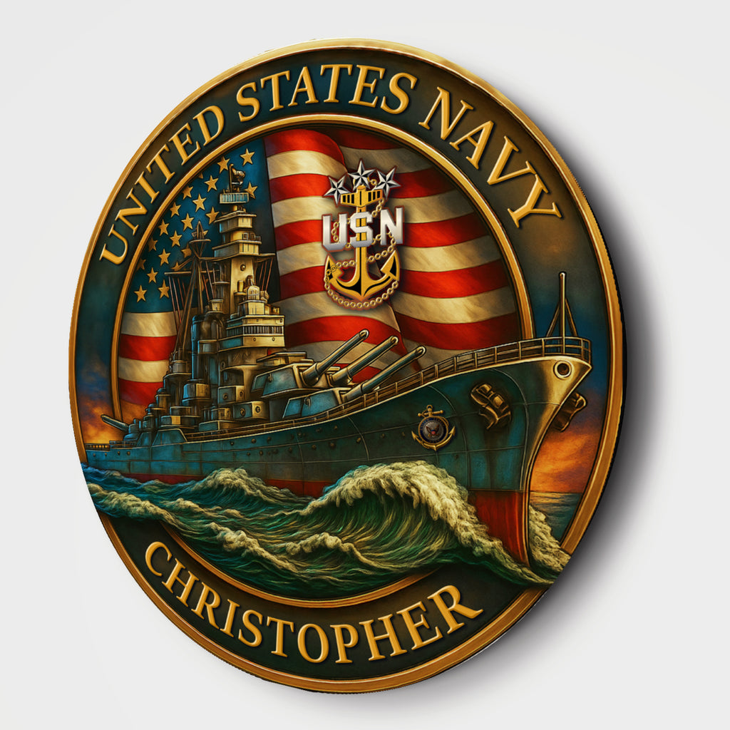 With rich colors and bold design, it honors both history and heroism, perfect for those who served at sea or anyone proud to support the fleet. Add a name and rank to make it a personal legacy piece.