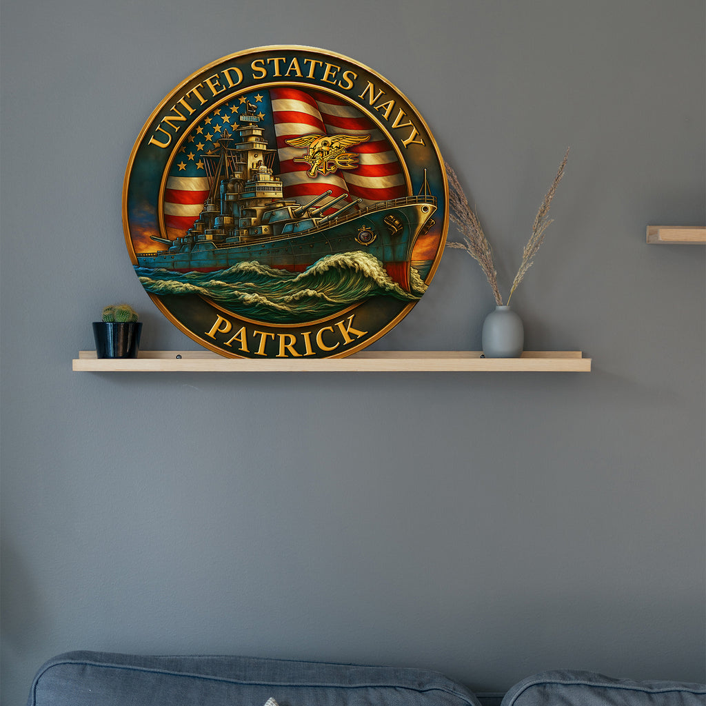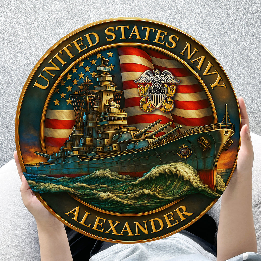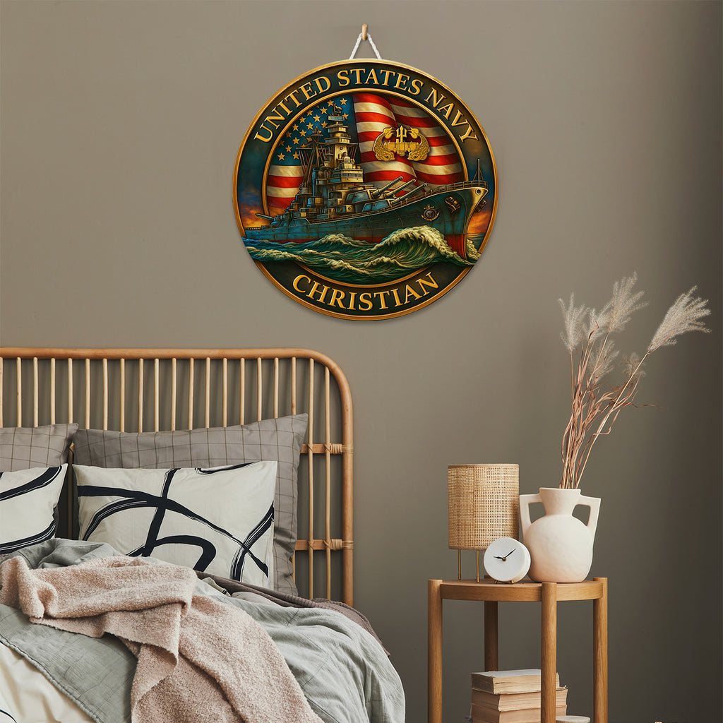 Personalized U.S. Navy Round Sign – Patriotic Decor for Sailors and Veterans