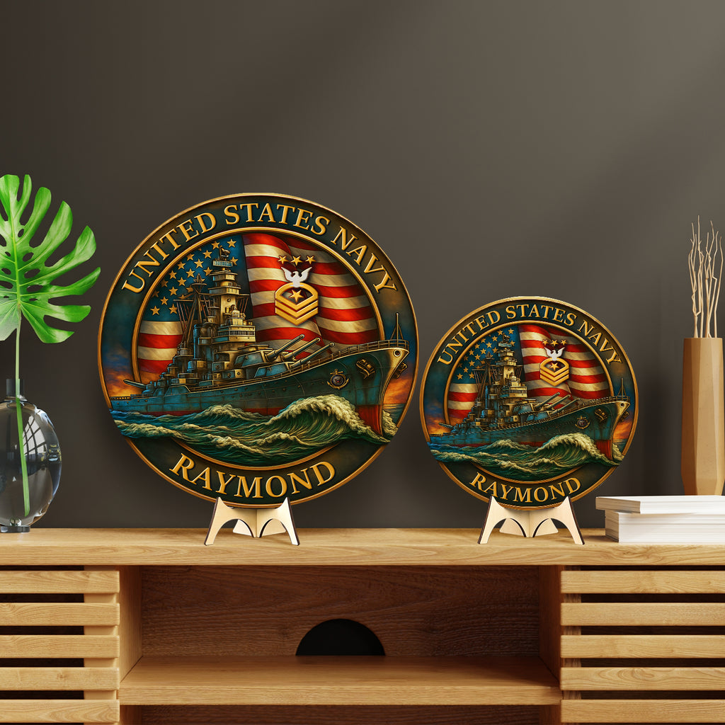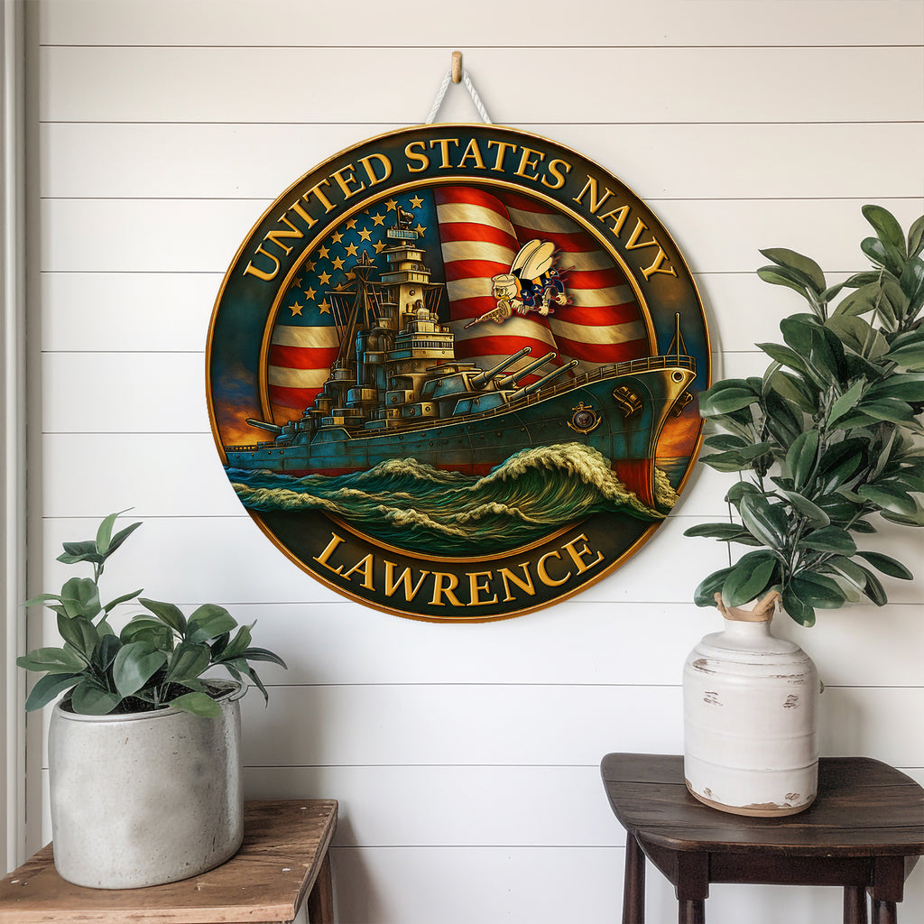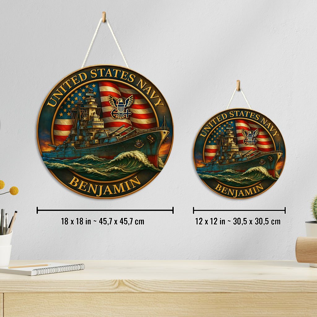 Personalized U.S. Navy Round Sign – Patriotic Decor for Sailors and Veterans
