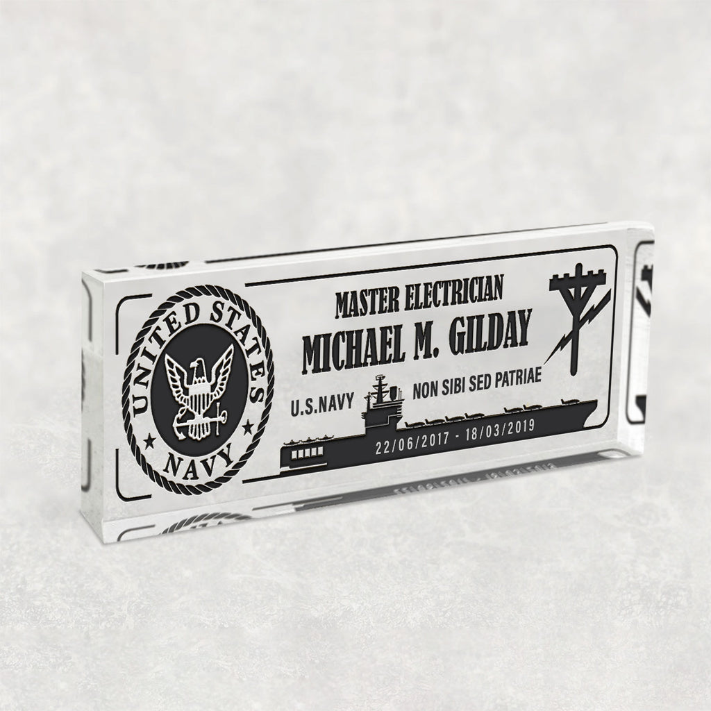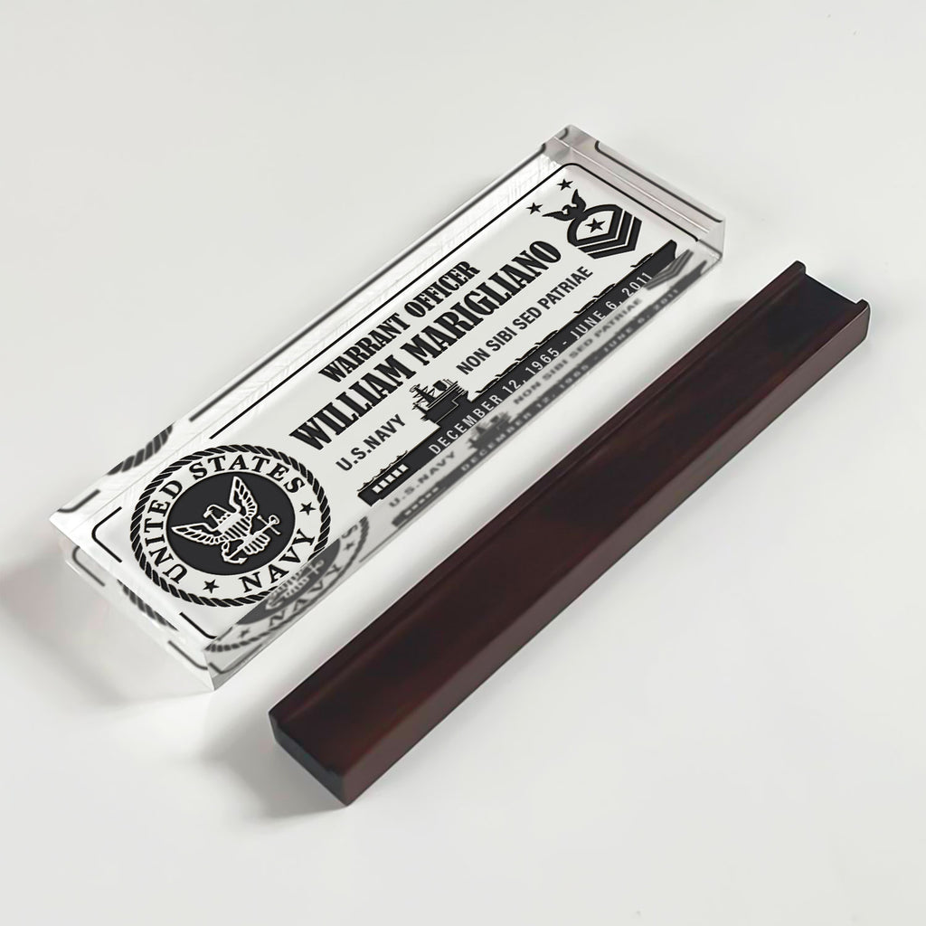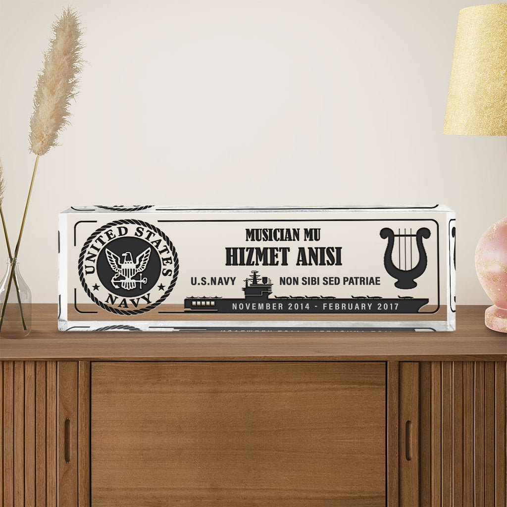 Celebrate dedication, honor, and service with this Personalized US Navy Acrylic Plaque, designed to recognize the contributions of active-duty sailors, veterans, and retired naval officers. Fully customizable with name, rank, service year, and optional emblem details, this plaque is perfect for milestone events such as promotions, retirements, or the US Navy 250th Anniversary. Crafted from high-clarity acrylic with professional printing, it delivers a sharp, lasting design that proudly reflects Navy pride. Ideal for display on desks, shelves, or as a special presentation gift during commemorative occasions.