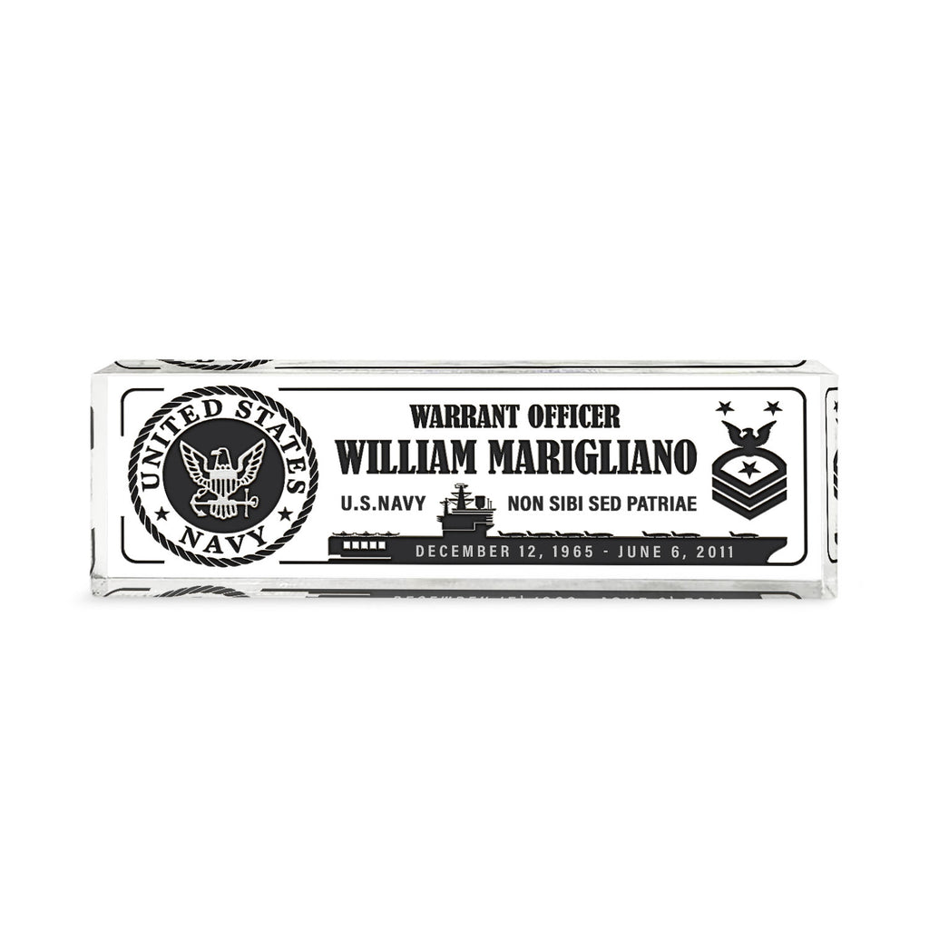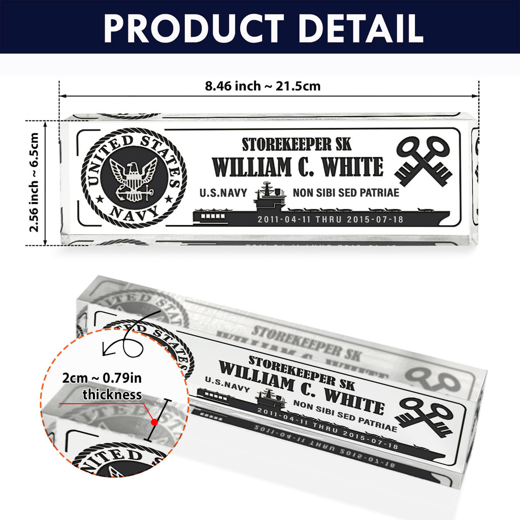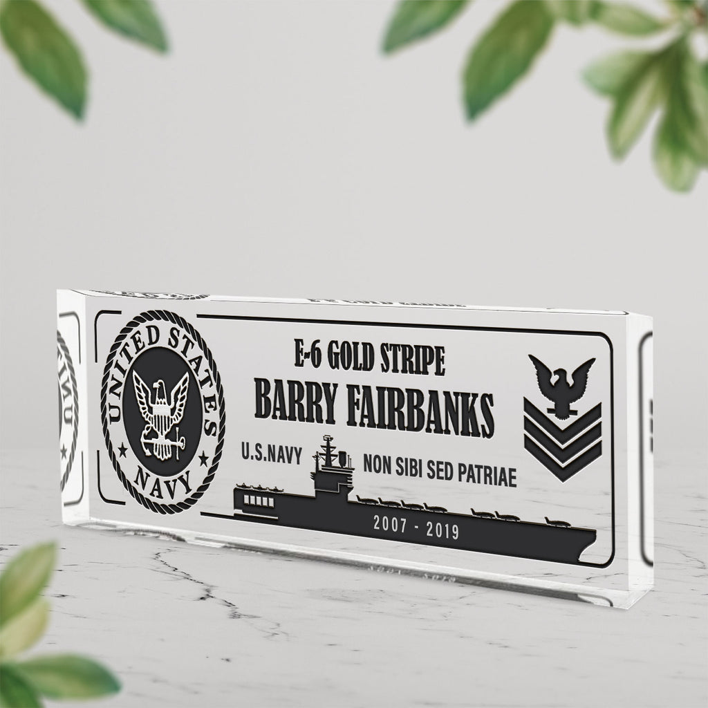 Celebrate dedication, honor, and service with this Personalized US Navy Acrylic Plaque, designed to recognize the contributions of active-duty sailors, veterans, and retired naval officers. Fully customizable with name, rank, service year, and optional emblem details, this plaque is perfect for milestone events such as promotions, retirements, or the US Navy 250th Anniversary. Crafted from high-clarity acrylic with professional printing, it delivers a sharp, lasting design that proudly reflects Navy pride. Ideal for display on desks, shelves, or as a special presentation gift during commemorative occasions.