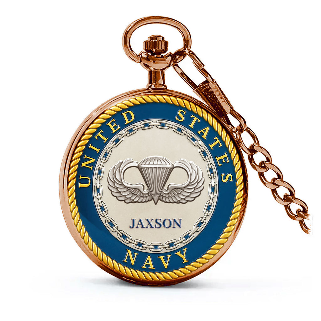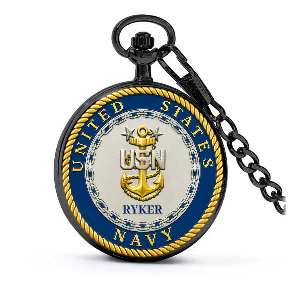 Custom US Navy Ranks/Insignia And Text - 3D Effect Printed Pocket Watch