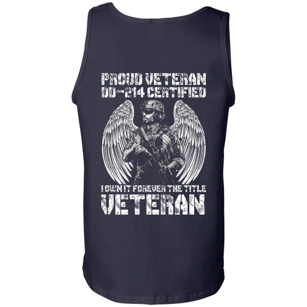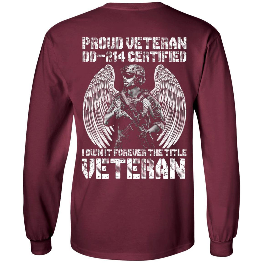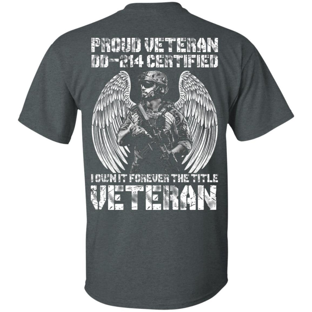 Military T-Shirt "Proud Veteran DD-214 I Own It Forever Men" On Back