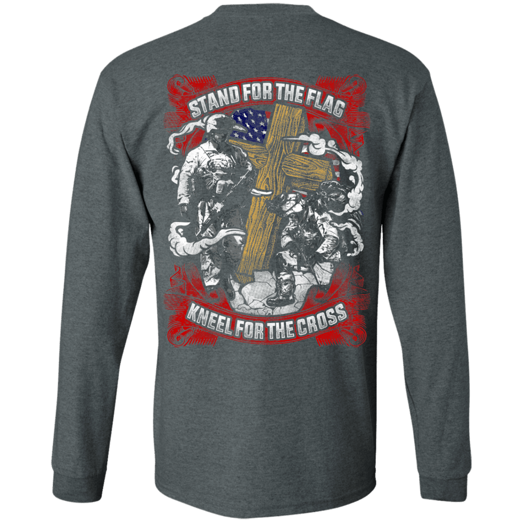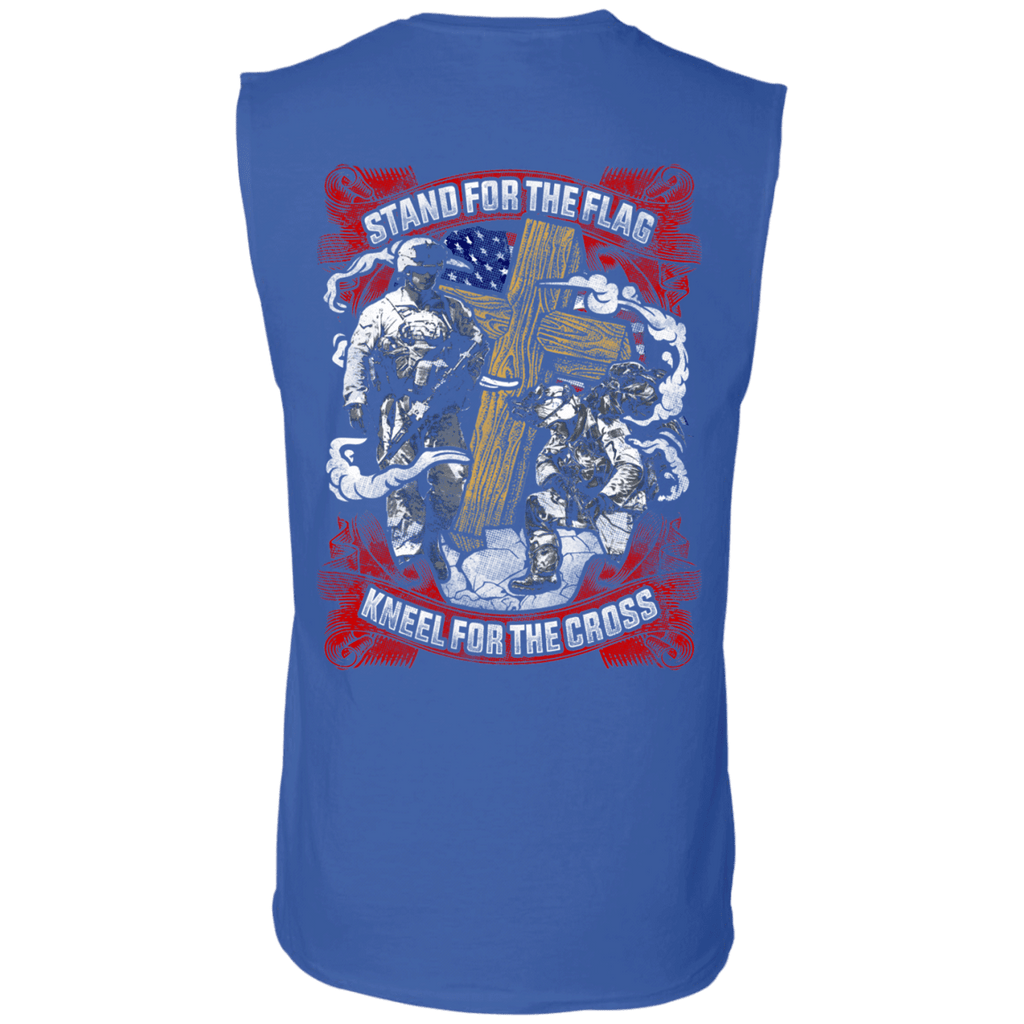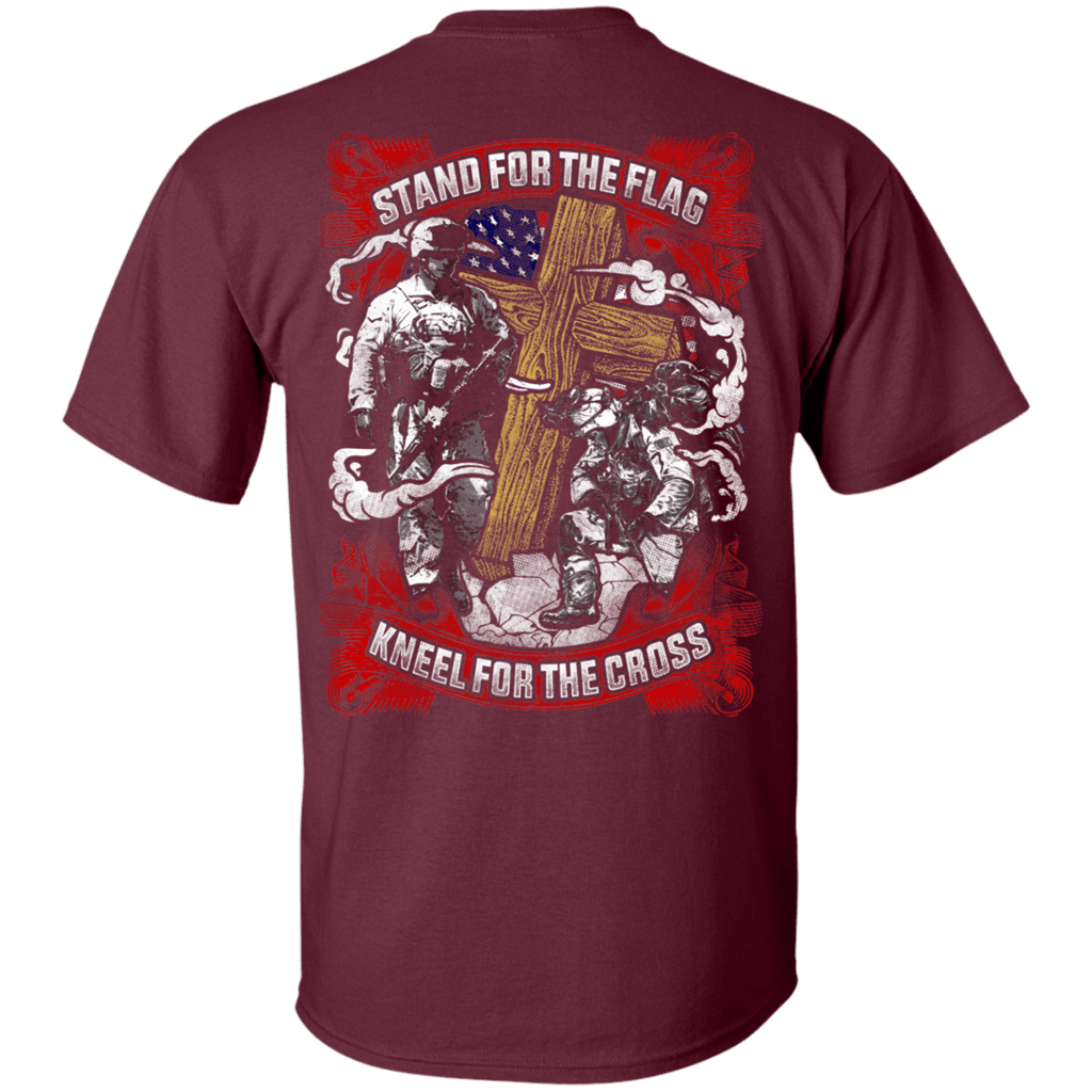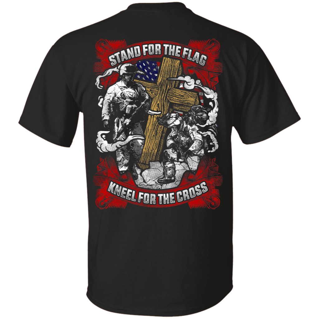 Military T-Shirt "Stand For the Flag Kneel For The Cross" Men Back