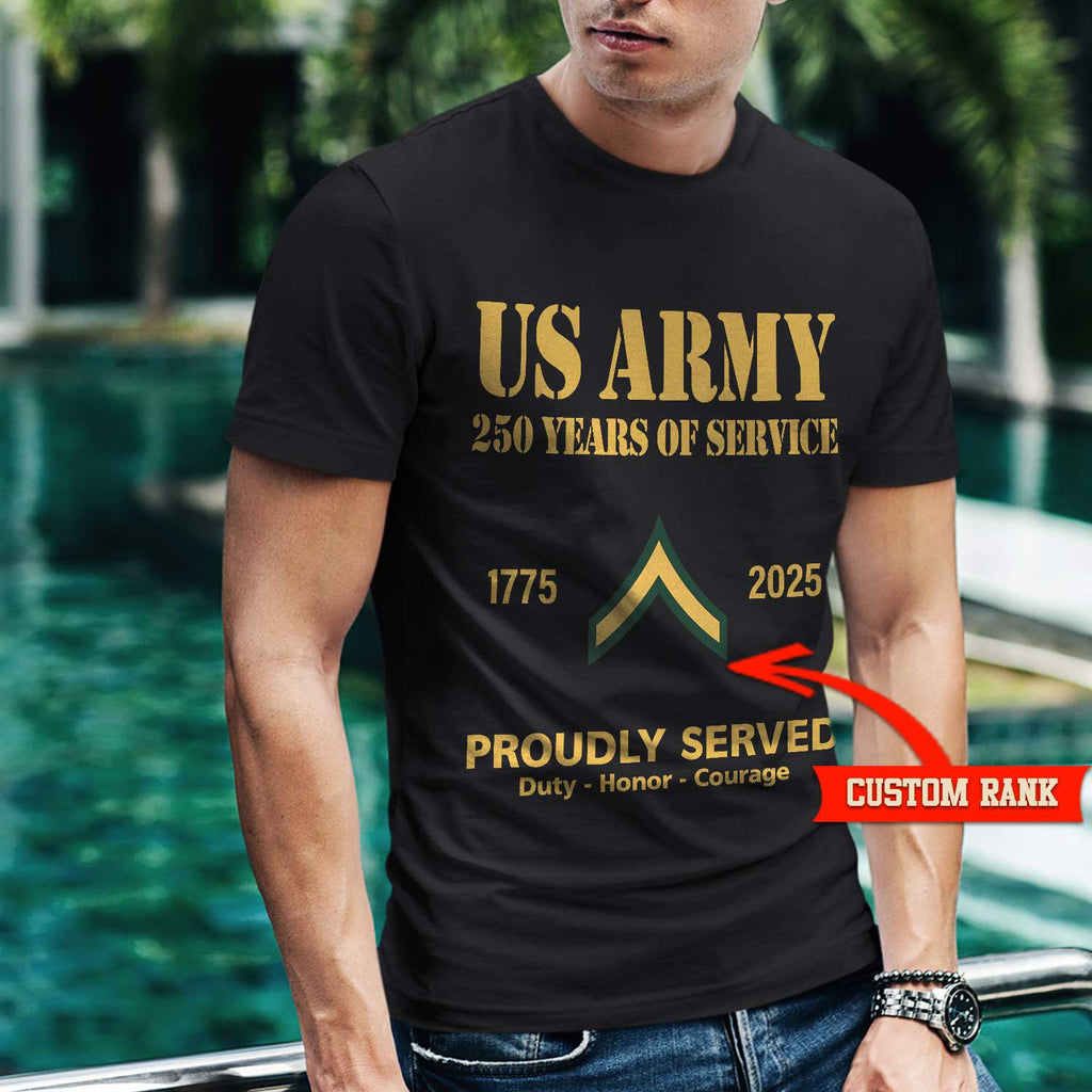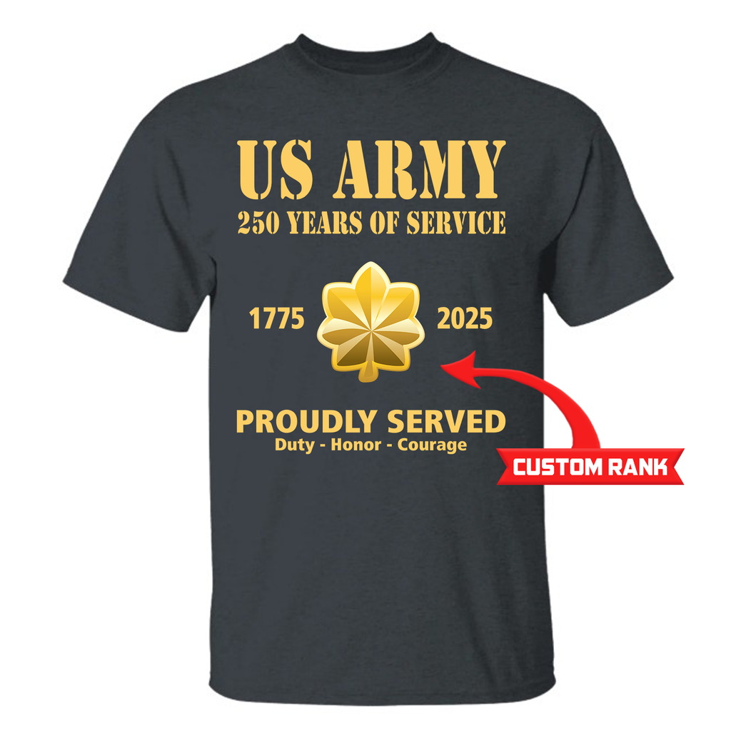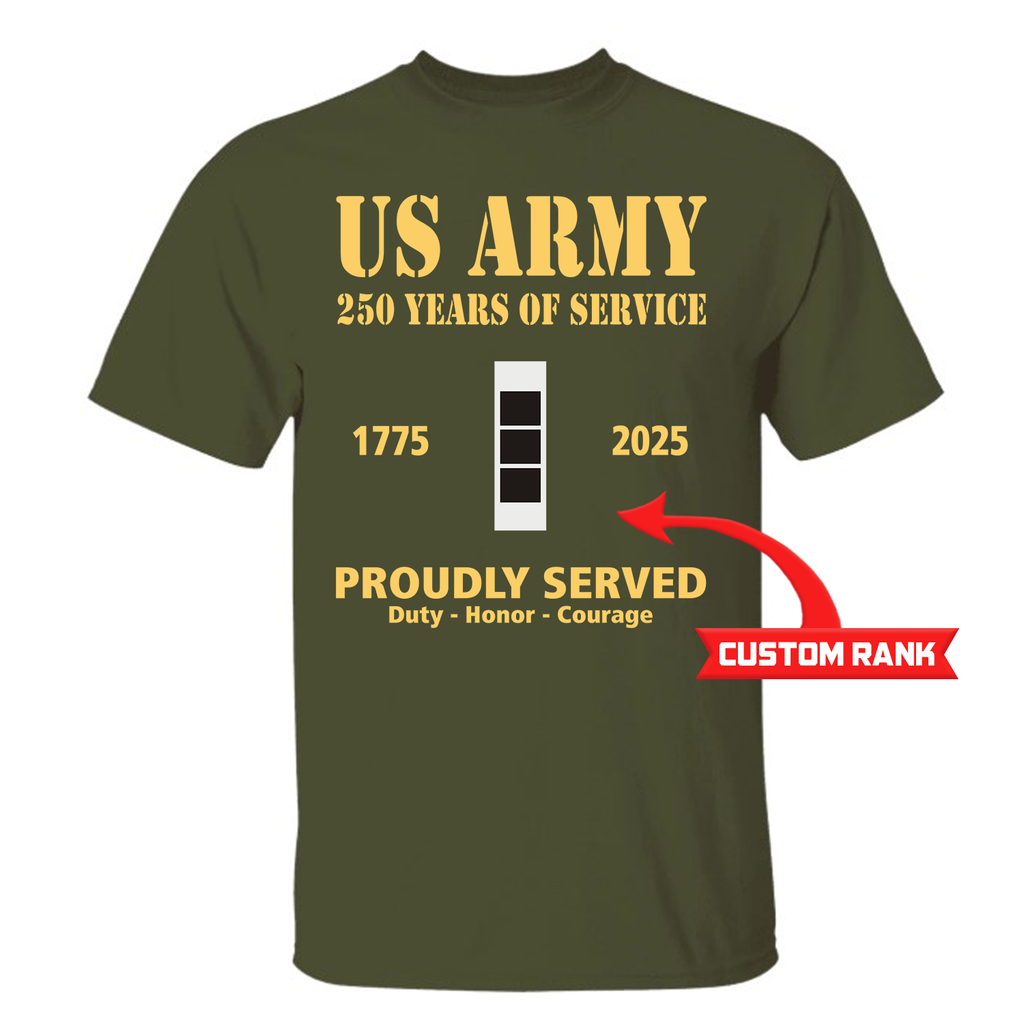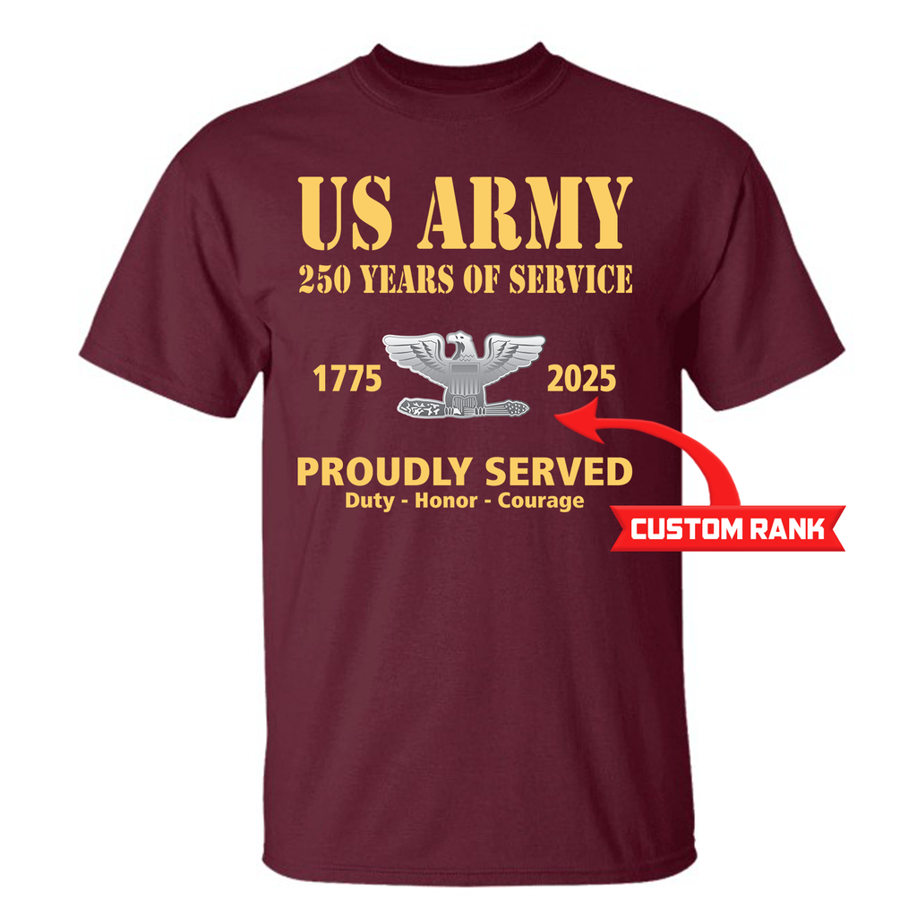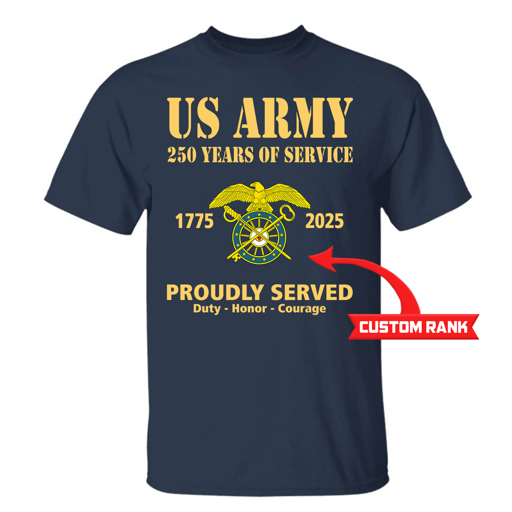 US Army 250 Years Of Service Custom Ranks/Insignia Front T-Shirt