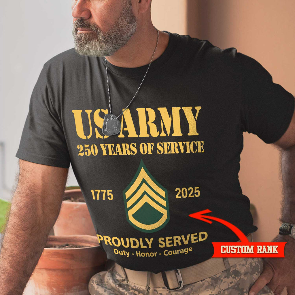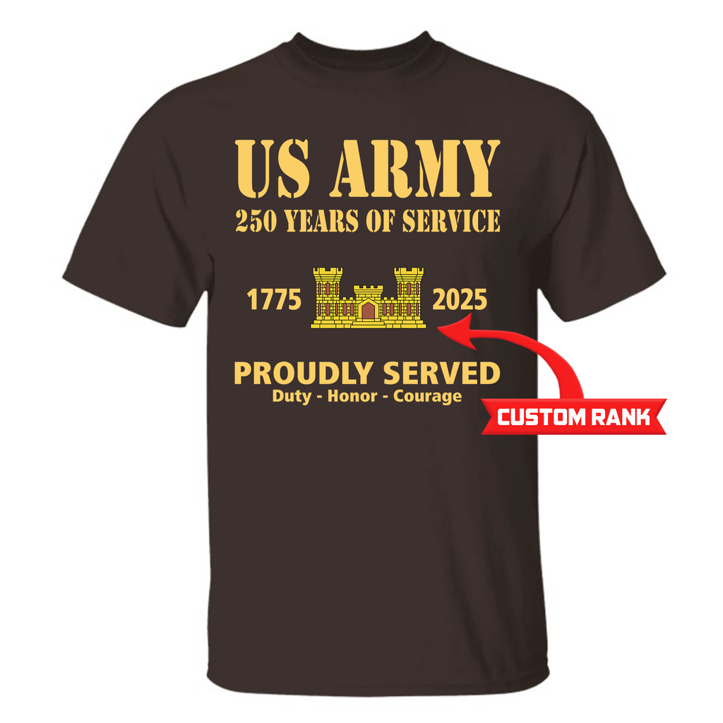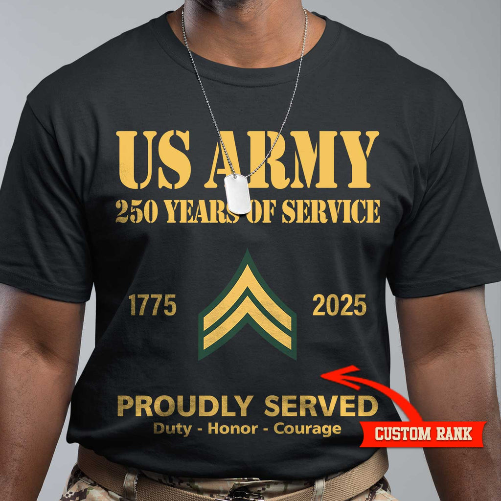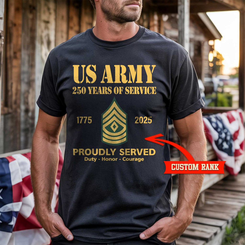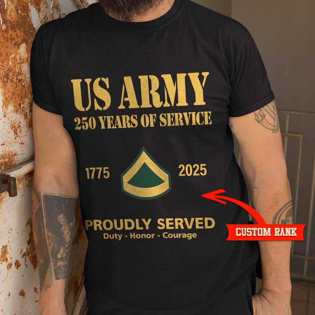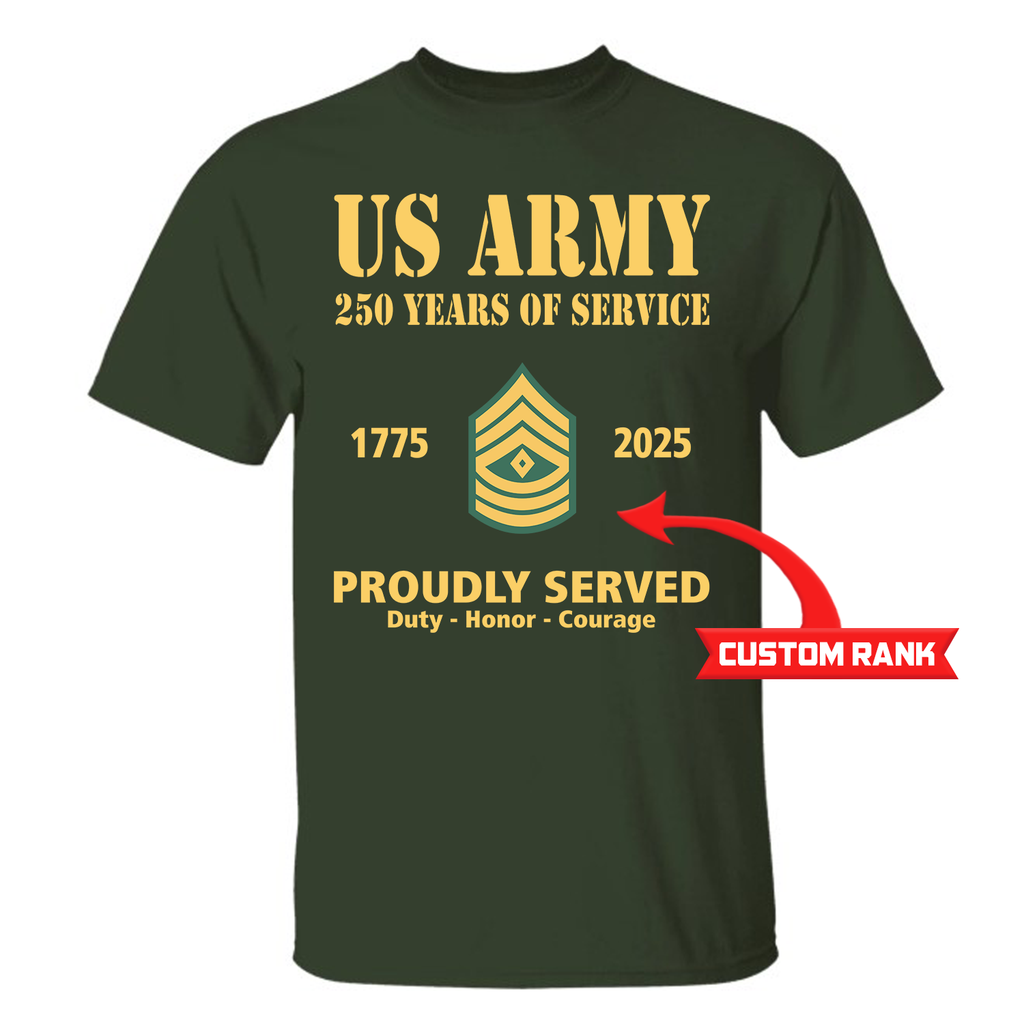 US Army 250 Years Of Service Custom Ranks/Insignia Front T-Shirt