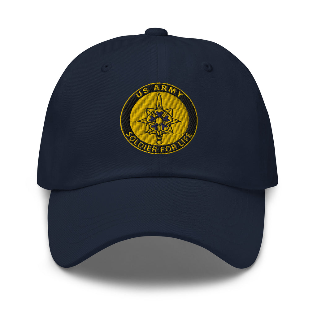 US Army Military Intelligence Branch Soldier For Life Embroidered Dad Hat