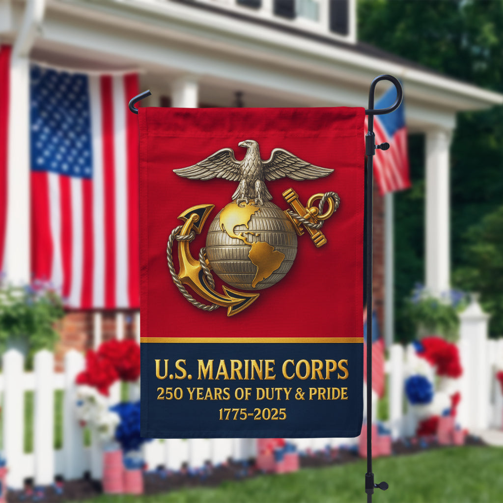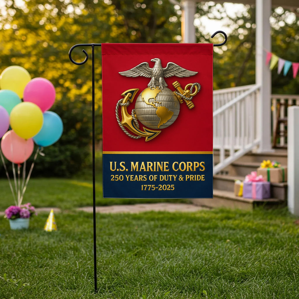 MARlNE 250 Years Of Duty & Pride Garden Flag 12" x 18" Twin-Side Printing