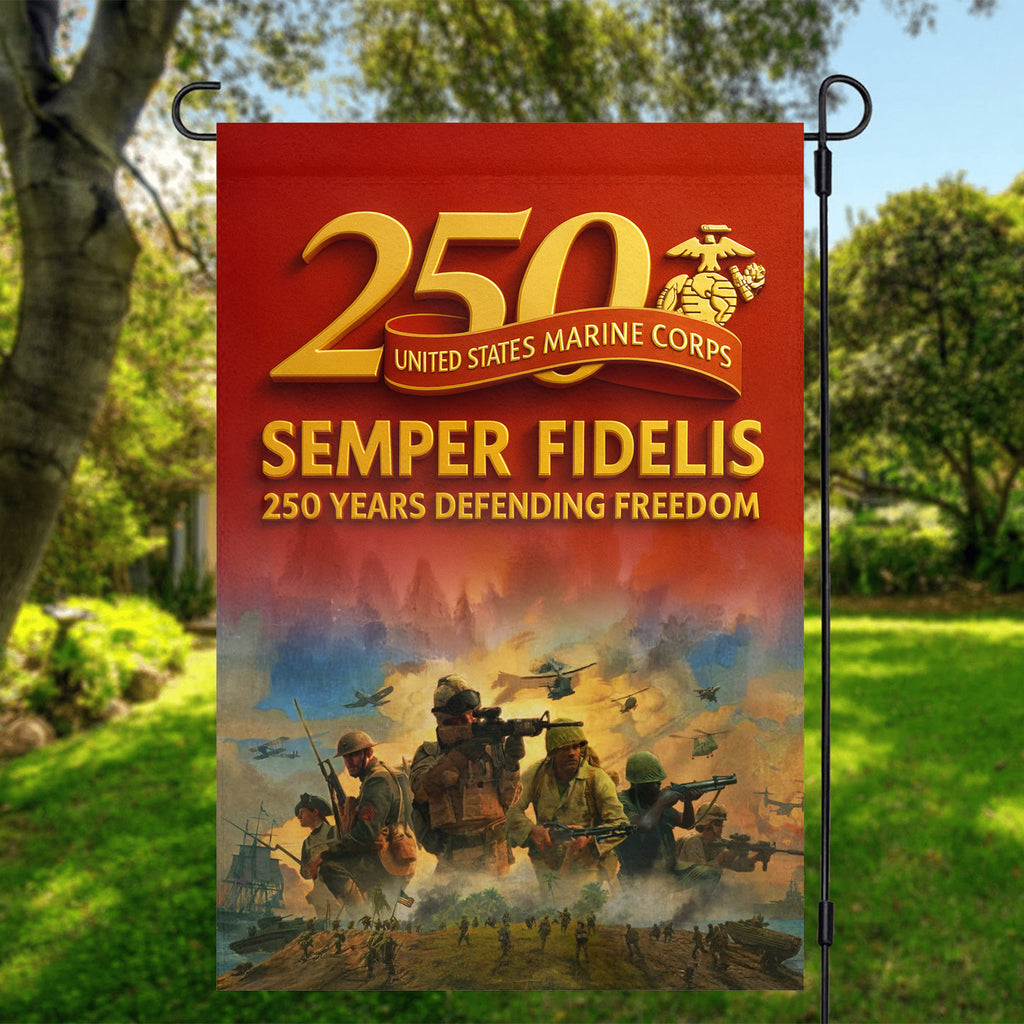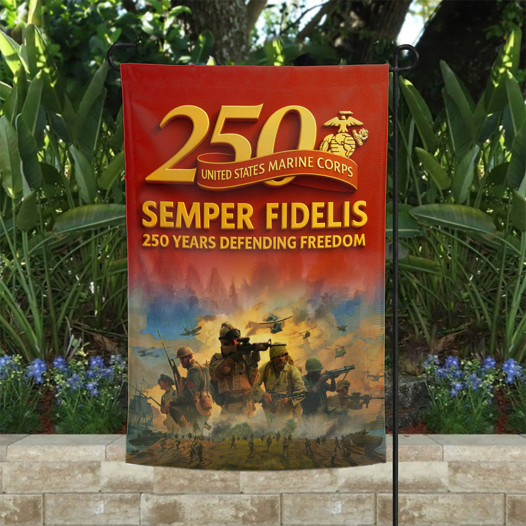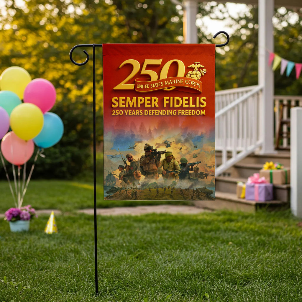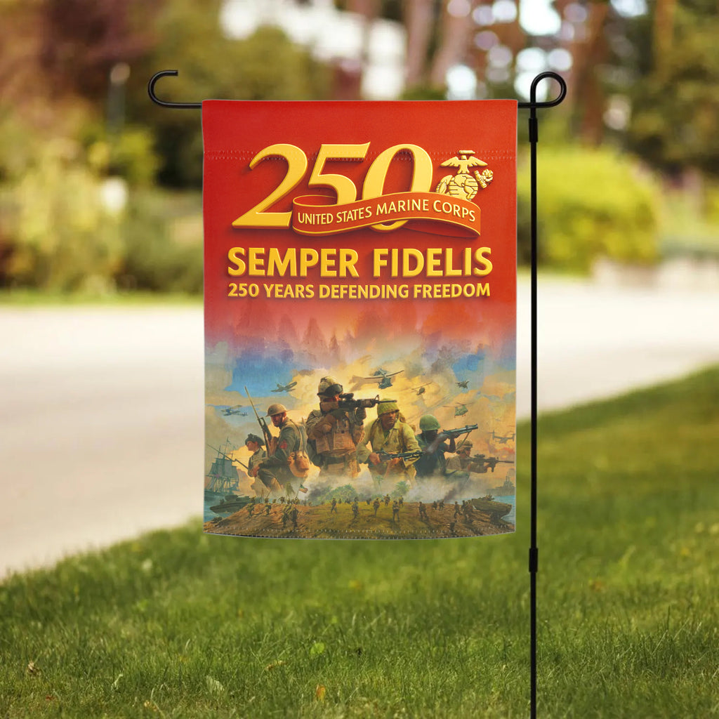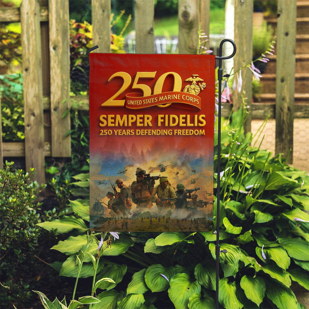 MARlNE Semper Fields 250 Years Defending Freedom Garden Flag 12" x 18" Twin-Side Printing