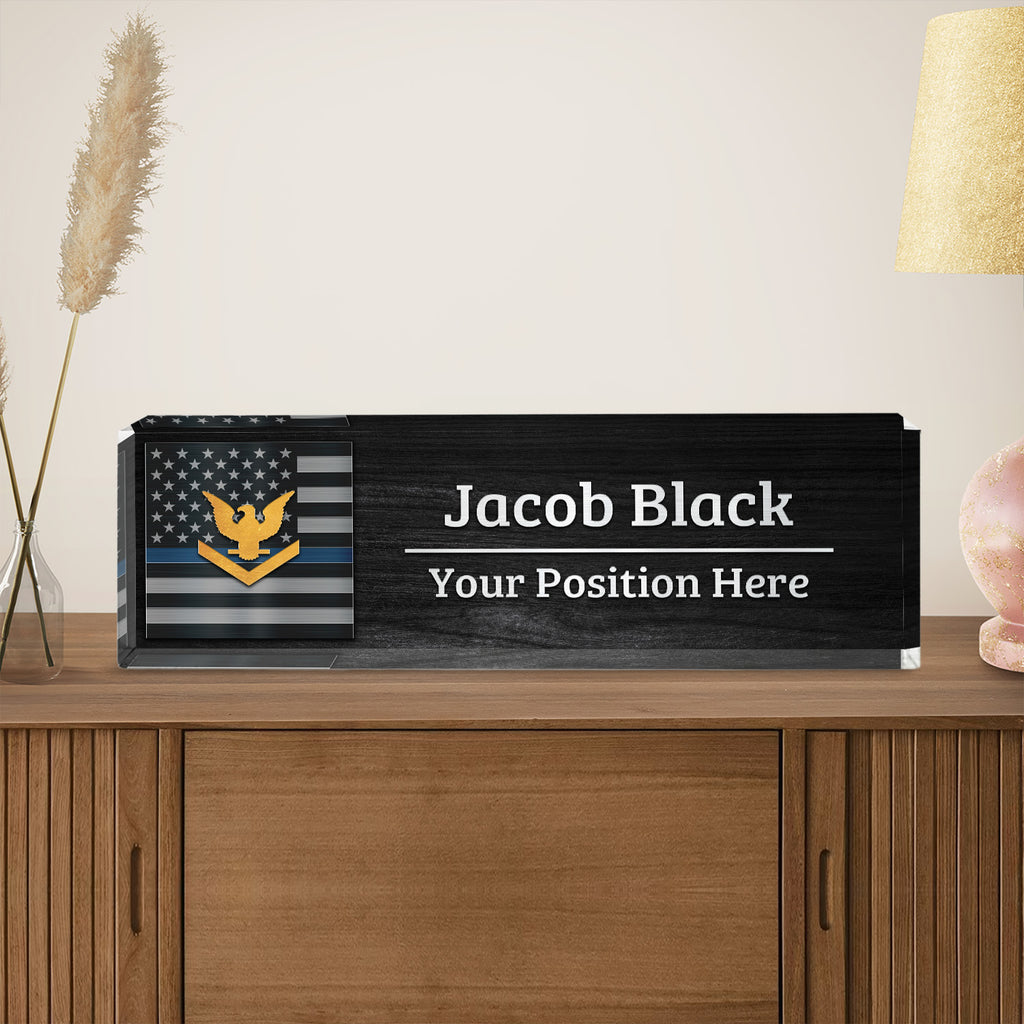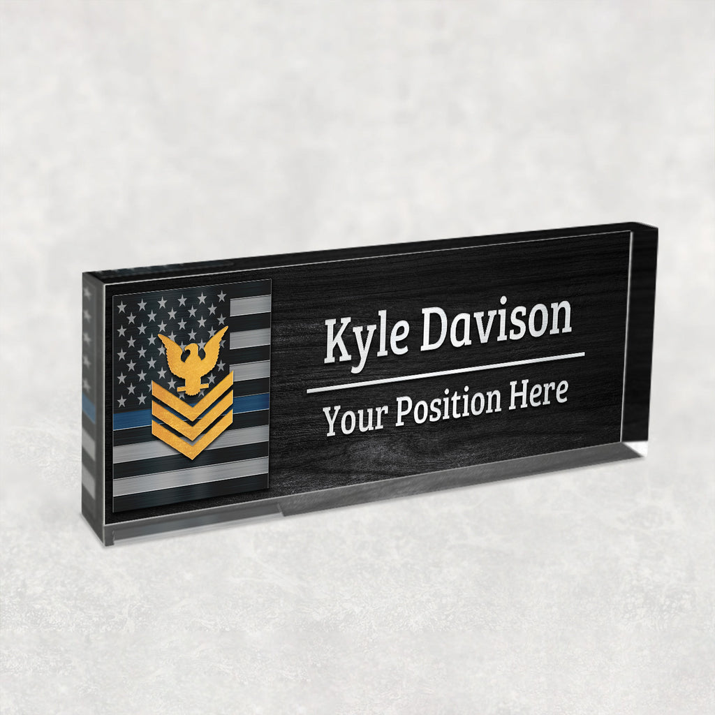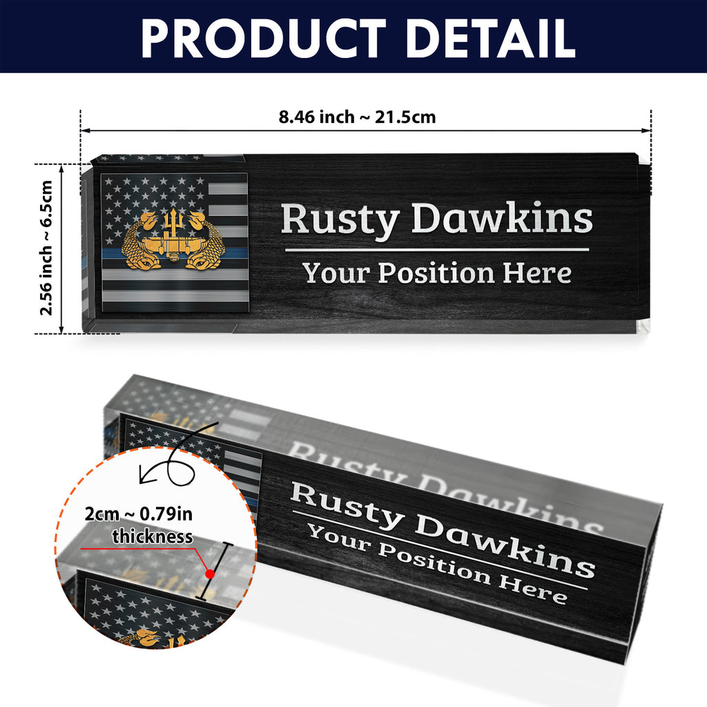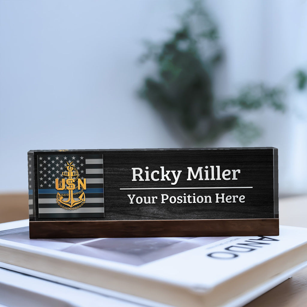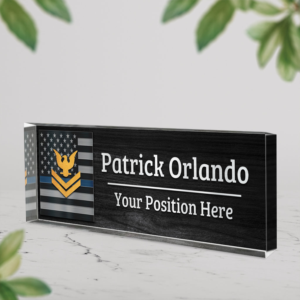 Honor the dedication and service of the United States Navy with this custom acrylic plaque. Personalize it with your name, rank, and service year to create a distinctive keepsake for promotions, retirements, or the US Navy 250th Anniversary. Featuring a Navy-inspired design and crafted from clear, durable acrylic with precision printing, it’s a meaningful tribute that looks great on any desk or display shelf.