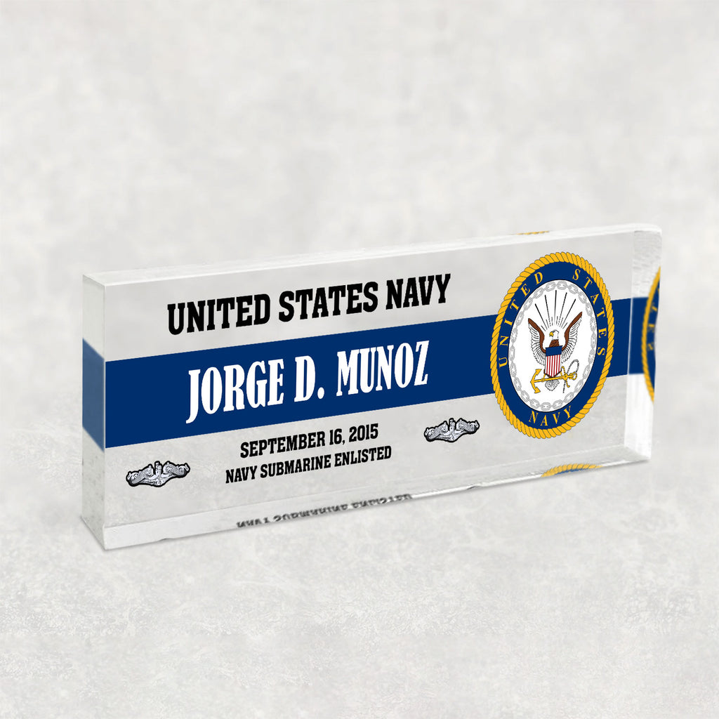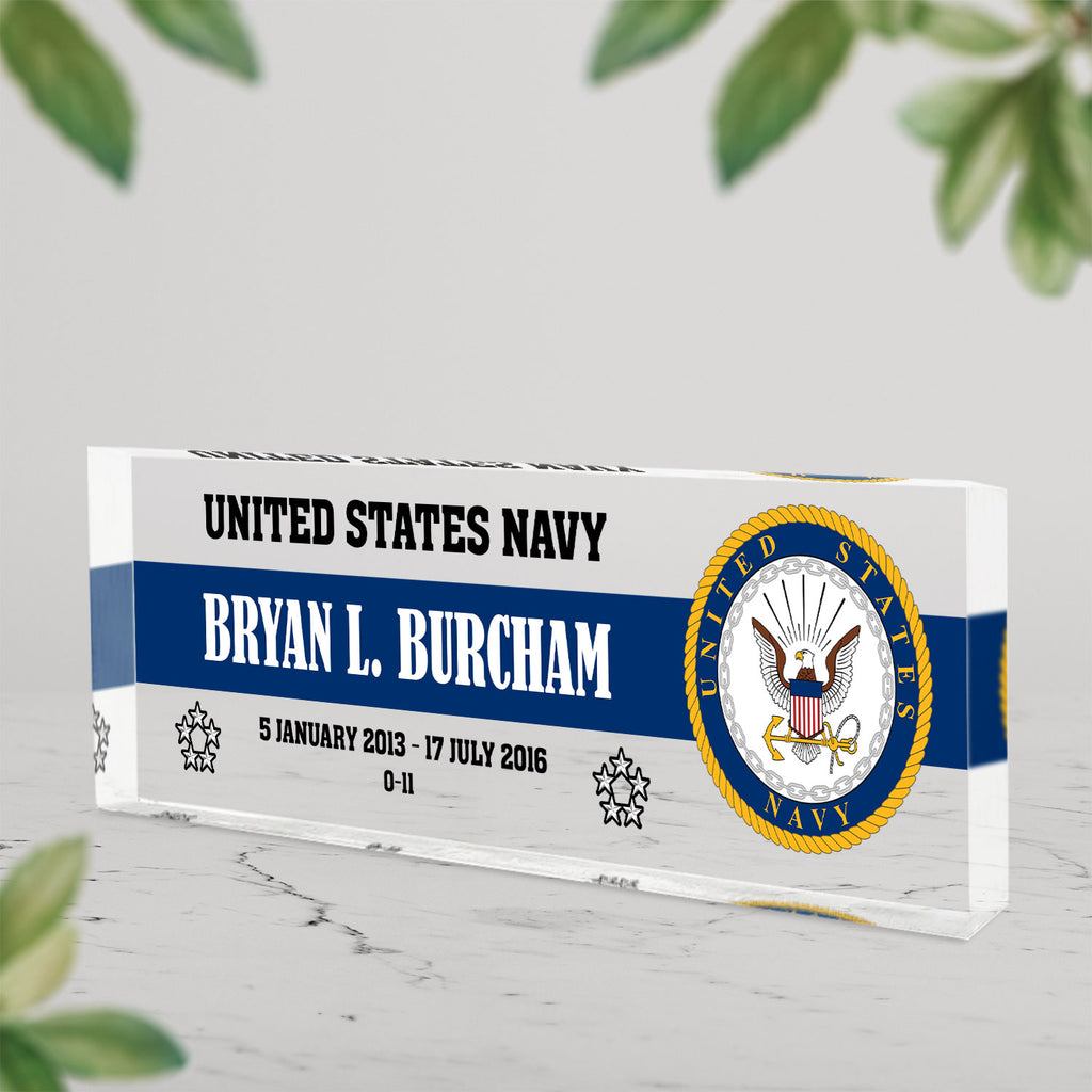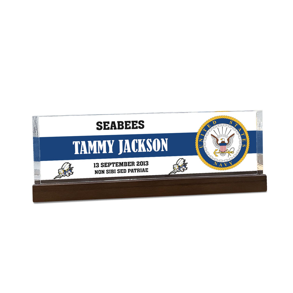 Celebrate the proud tradition of the US Navy Seabees with this personalized acrylic plaque, perfect for active-duty members, veterans, and retirees. Customize it with your name, rank, and service year to create a unique keepsake that reflects honor and dedication. Whether for a promotion, retirement, or the 250th Anniversary of the US Navy, this plaque makes a meaningful tribute. Crafted from durable, crystal-clear acrylic and printed with precision, it’s ideal for display at home, in the office, or during special ceremonies.