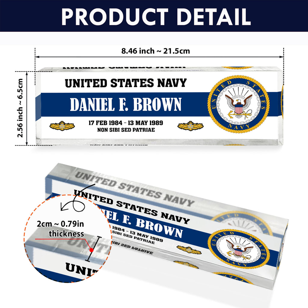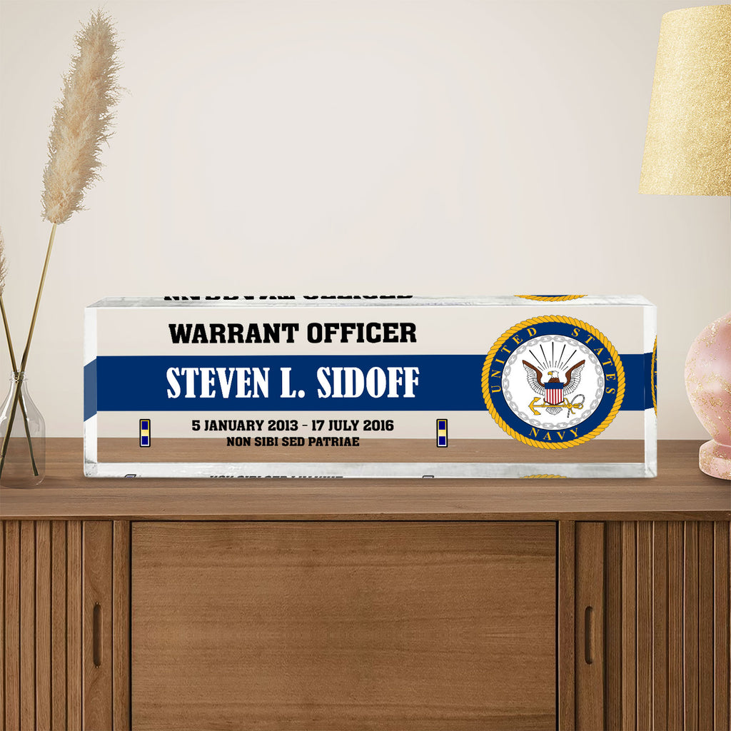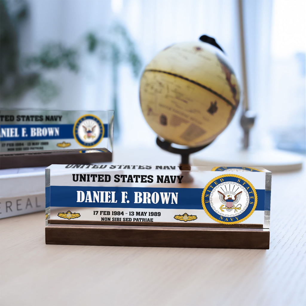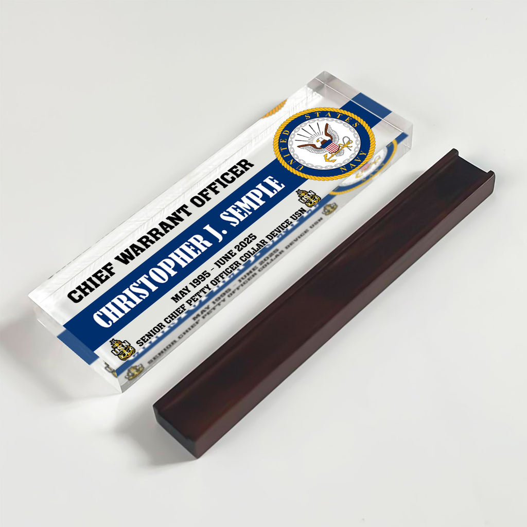 Celebrate the proud tradition of the US Navy Seabees with this personalized acrylic plaque, perfect for active-duty members, veterans, and retirees. Customize it with your name, rank, and service year to create a unique keepsake that reflects honor and dedication. Whether for a promotion, retirement, or the 250th Anniversary of the US Navy, this plaque makes a meaningful tribute. Crafted from durable, crystal-clear acrylic and printed with precision, it’s ideal for display at home, in the office, or during special ceremonies.