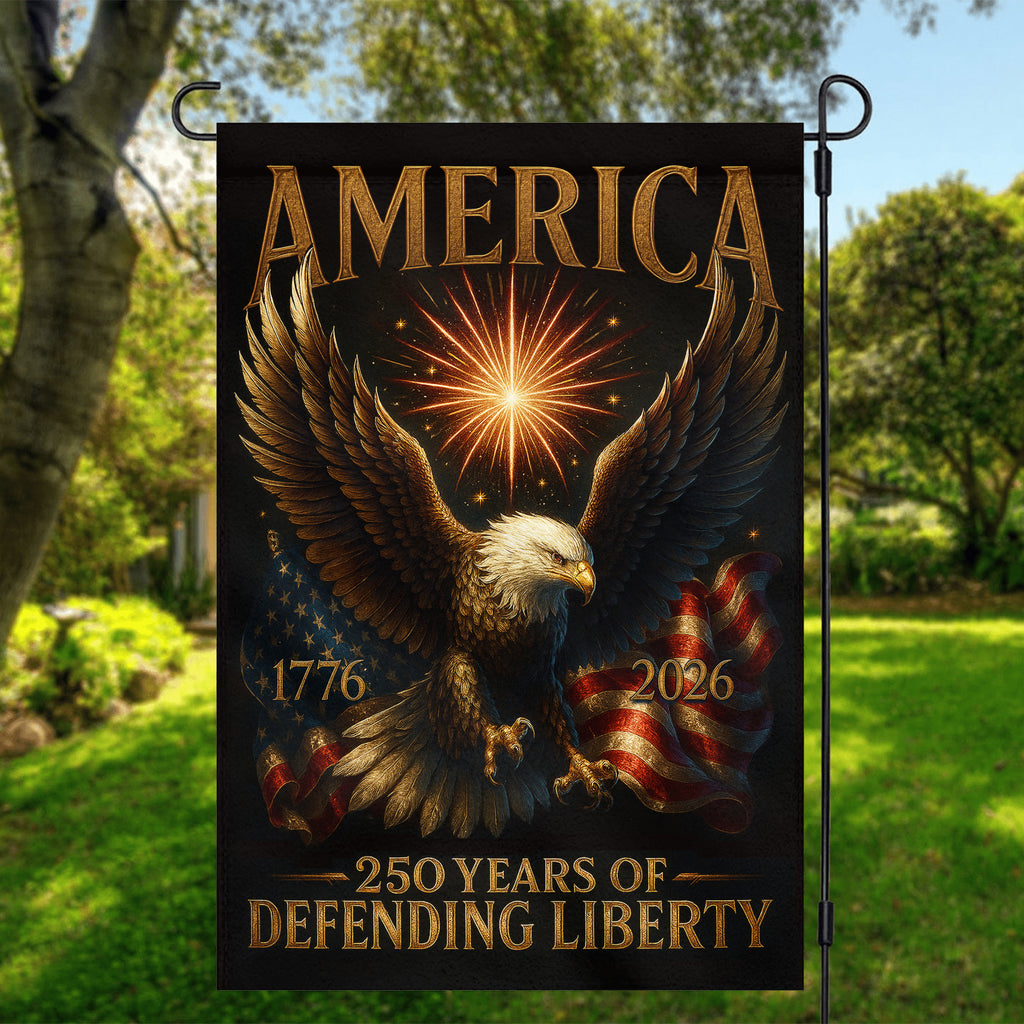 America 250 Years Of Defending Liberty Garden Flag 12''x18'' Twin-Side Printing
