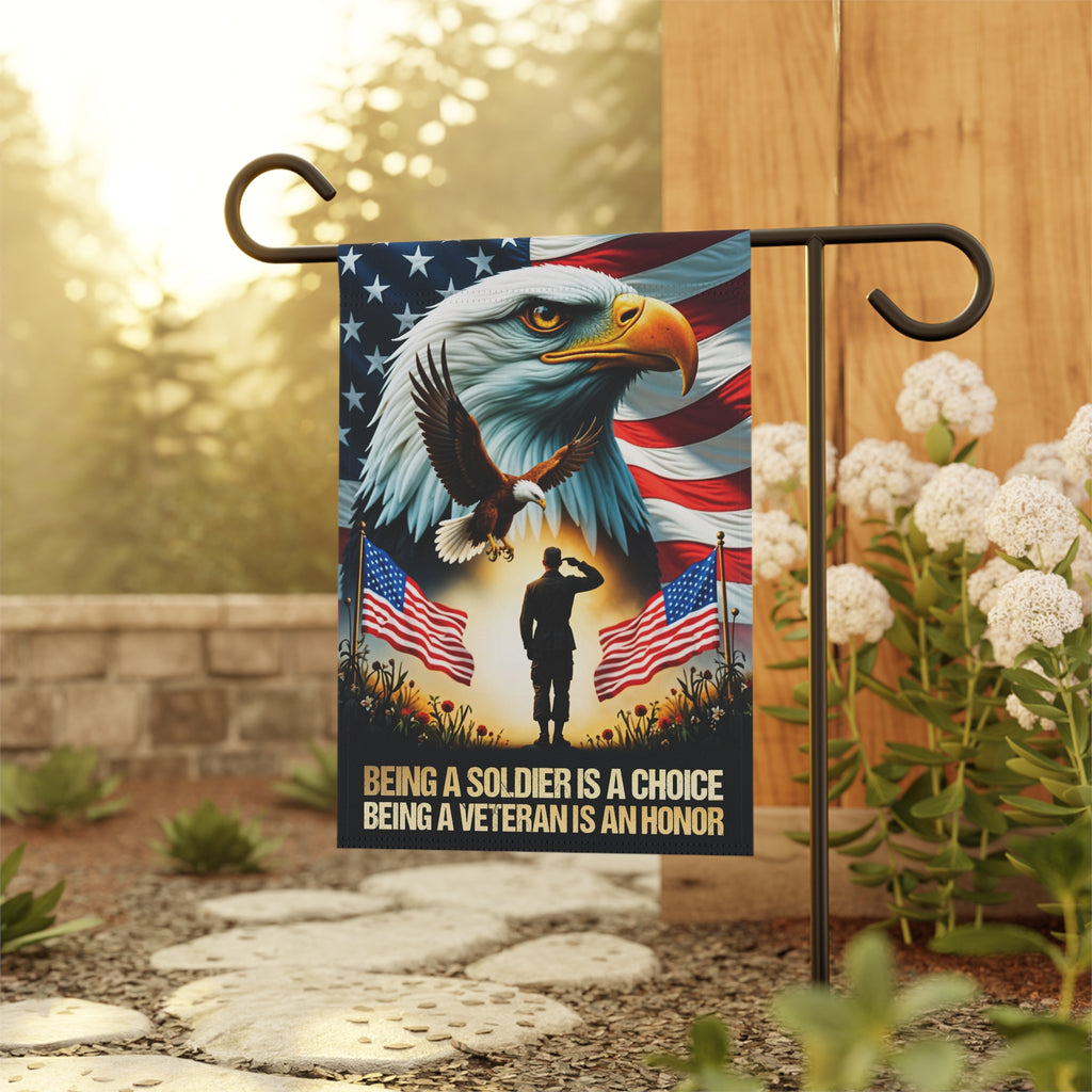 Introducing a stunning Garden Banner that celebrates patriotism and honors our veterans! Crafted from lightweight 100% poly poplin-canvas fabric, this eye-catching piece brings vibrant colors and sharp designs to your garden or outdoor space. Perfect for expressing your love for the military or showing support for friends and family who served. The design is bold enough to make a statement while being versatile for various occasions, including Memorial Day, Independence Day, Veterans Day, or any military-themed gathering.