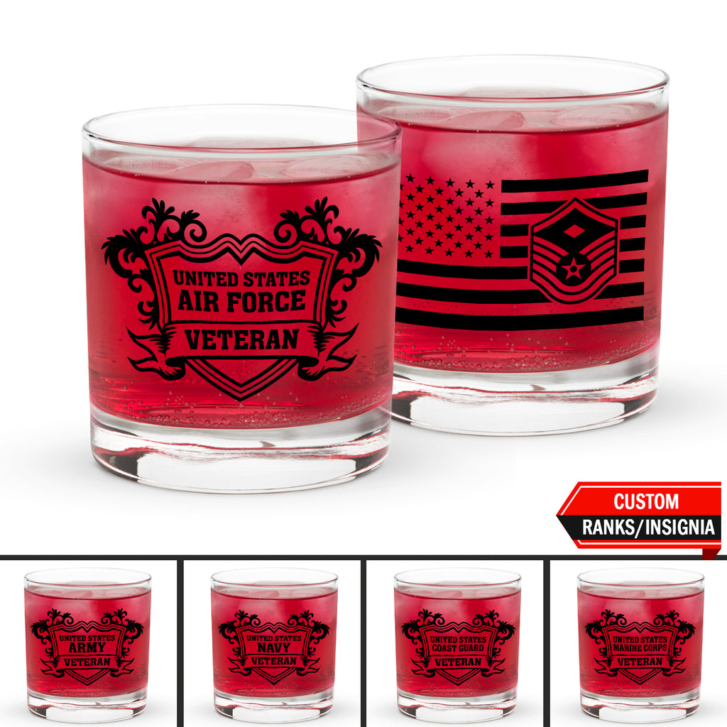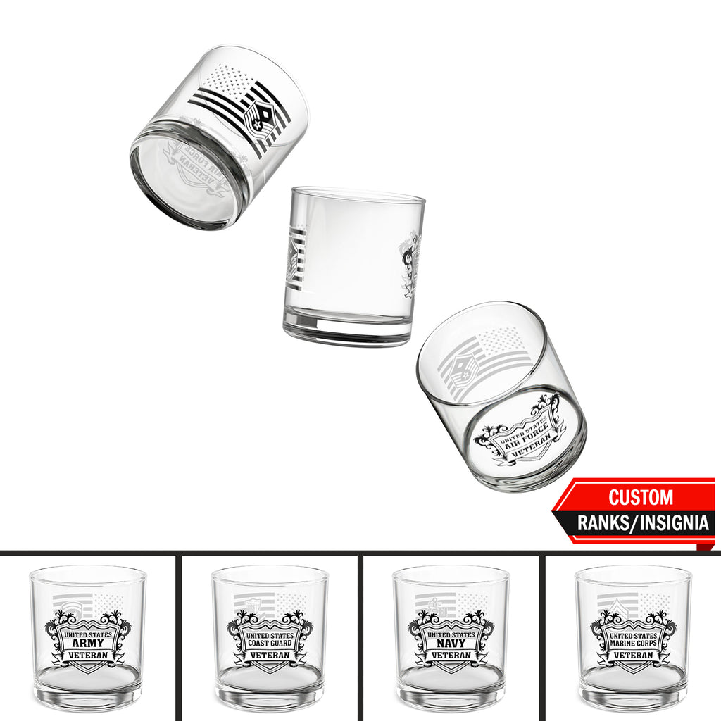 Custom US Military Ranks/Insignia JRGL01 Patriotic Eagle Rocks Glass - 10oz