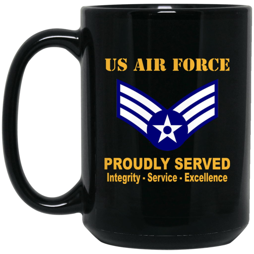 US Air Force E-4 Senior Airman SrA E4 Enlisted Airman Ranks AF Rank Proudly Served Black Mug 11 oz - 15 oz