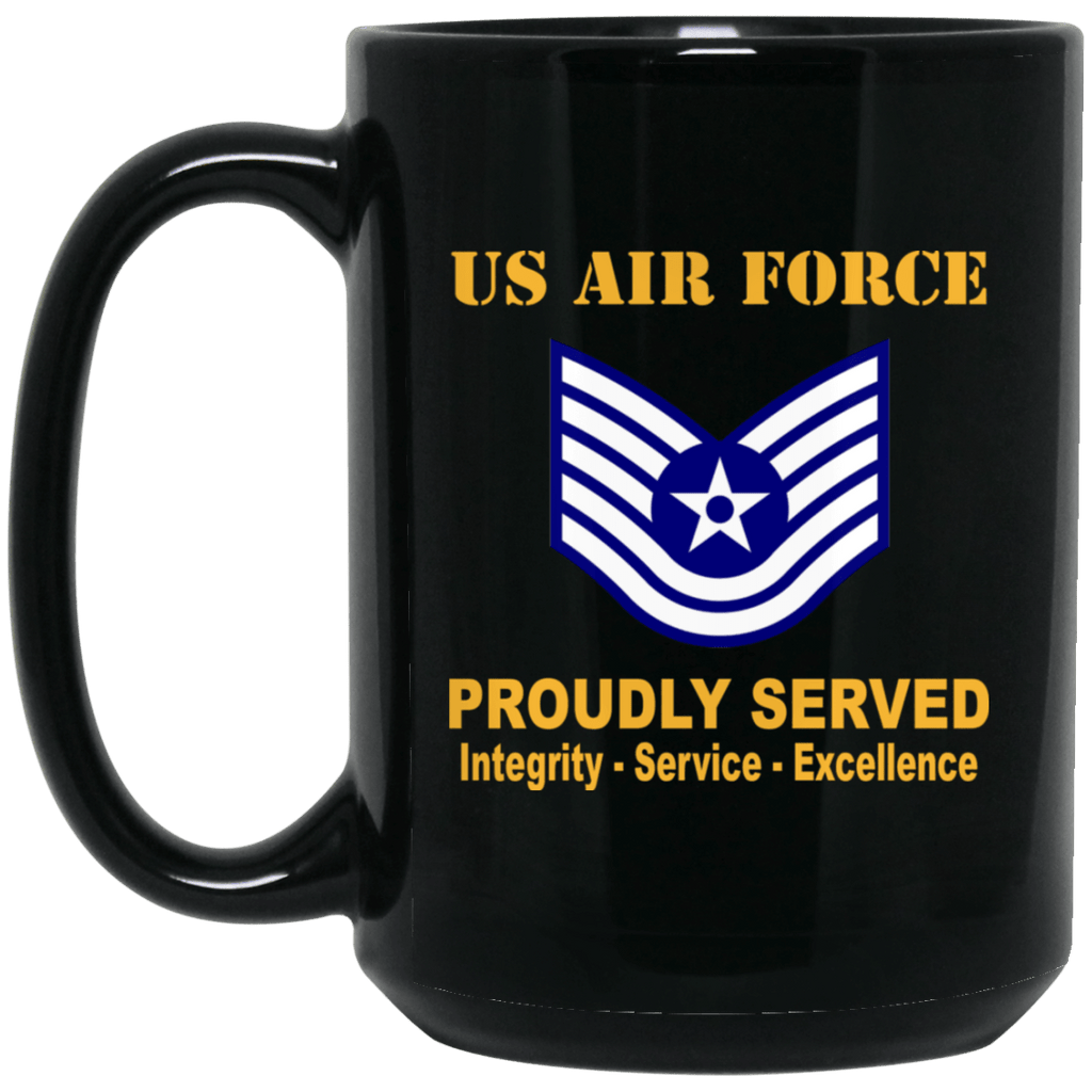 US Air Force E-6 Technical Sergeant TSgt E6 Noncommissioned Officer Ranks AF Rank Proudly Served Black Mug 11 oz - 15 oz