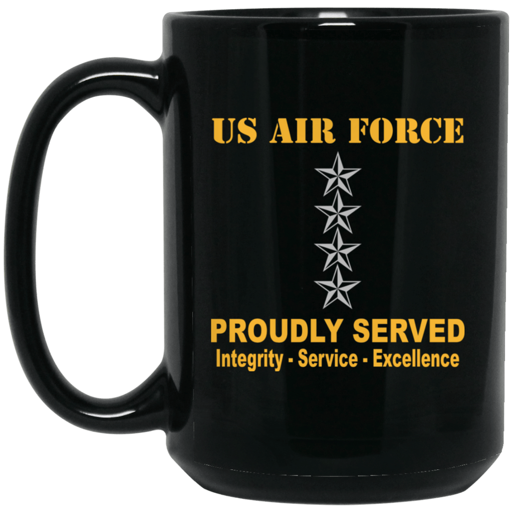 US Air Force O-10 General Gen O10 General Officer Ranks Proudly Served Black Mug 11 oz - 15 oz