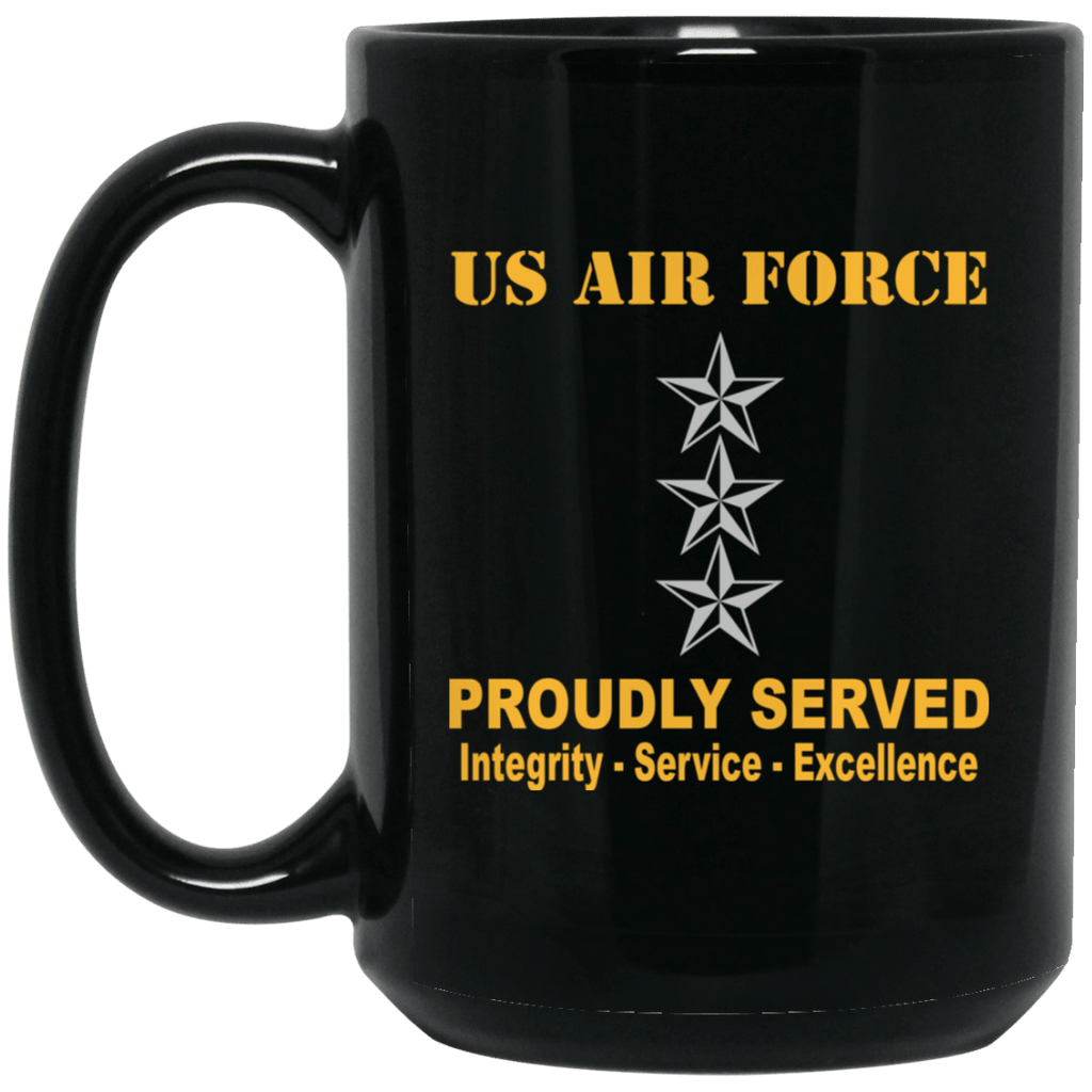US Air Force O-9 Lieutenant General Lt Ge O9 General Officer Ranks Proudly Served Black Mug 11 oz - 15 oz